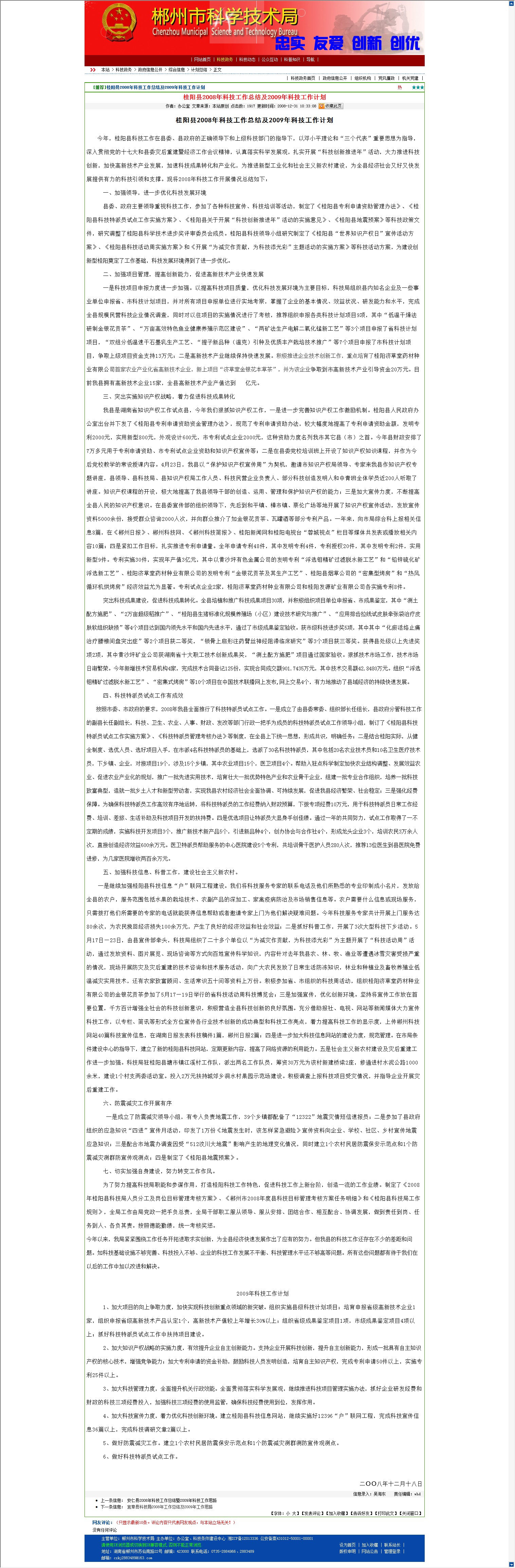 桂阳县2008年科技工作总结及2009年科技工作计划