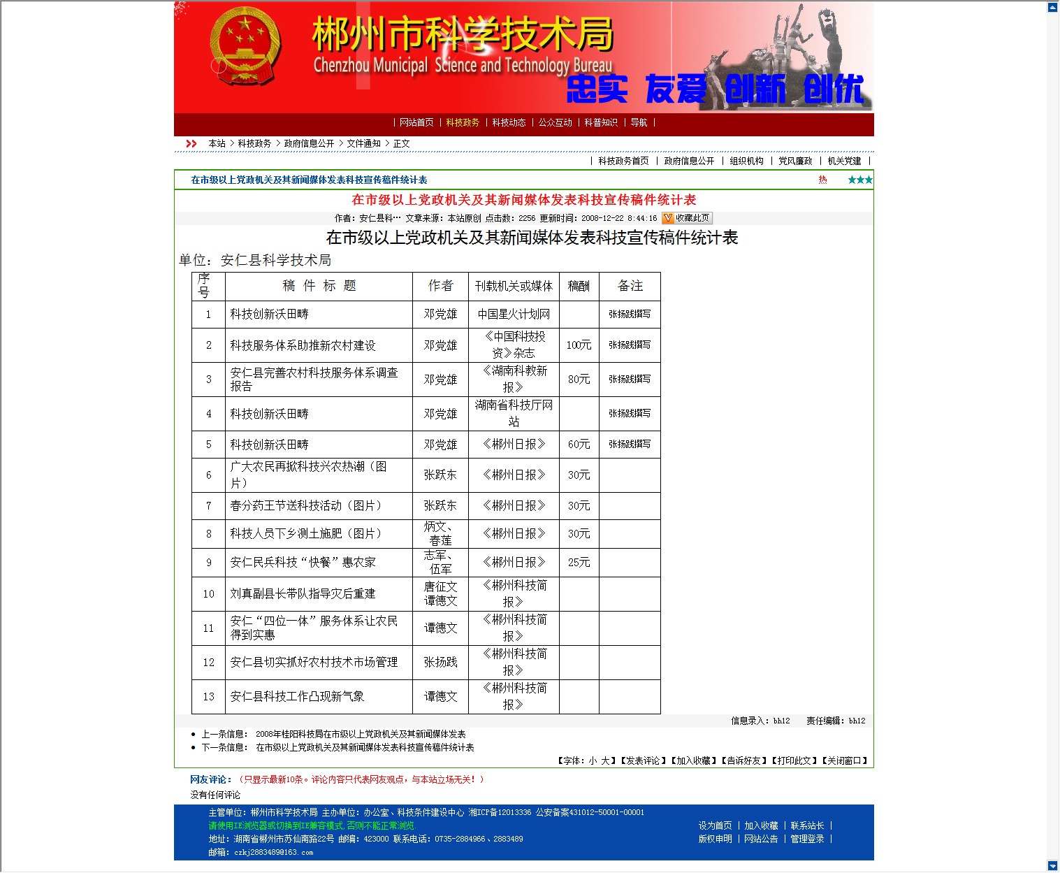 在市级以上党政机关及其新闻媒体发表科技宣传稿件统计表