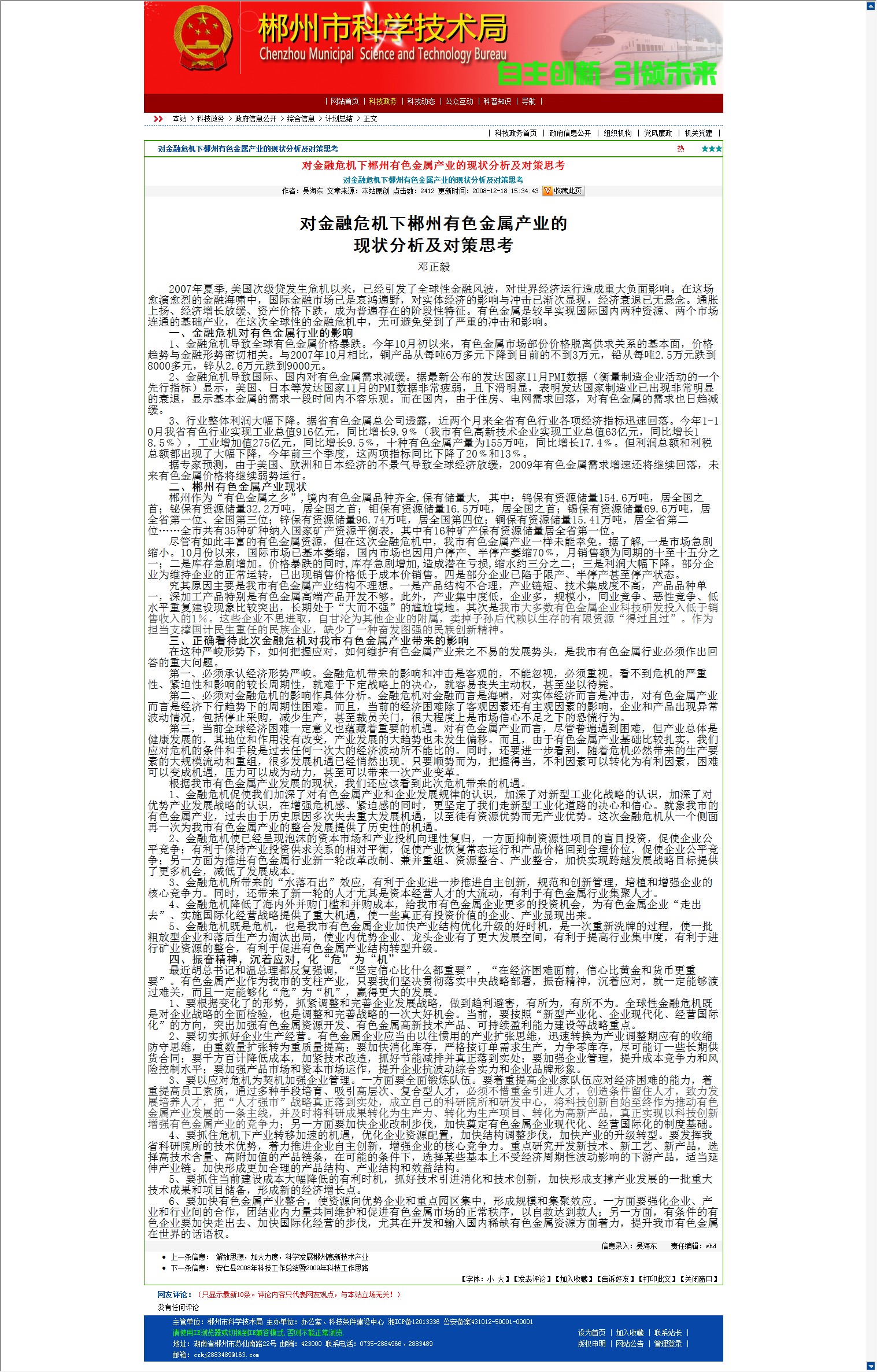 对金融危机下郴州有色金属产业的