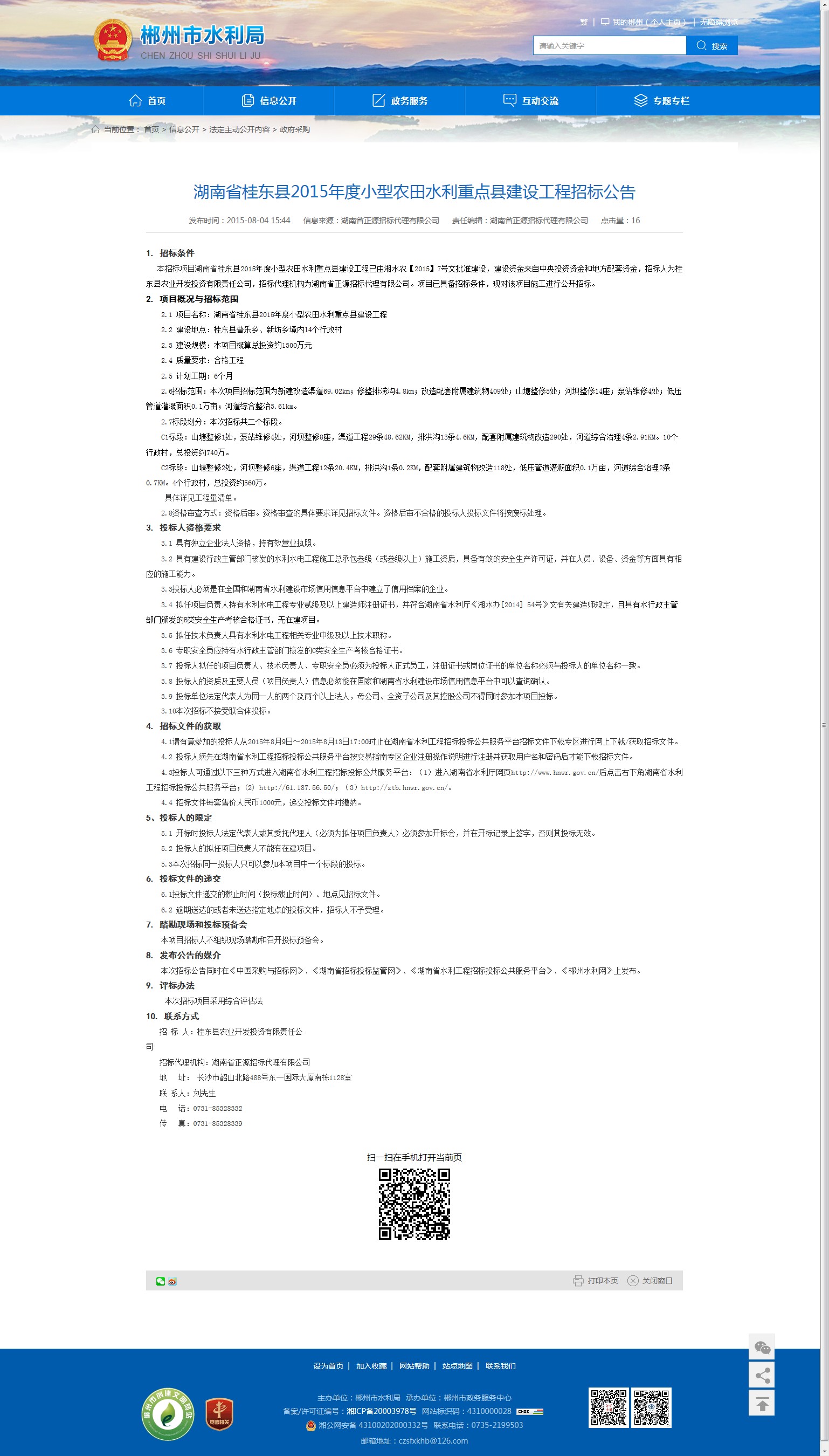 本次招标公告同时在《中国采购与招标网》、《湖南省招标投标监管网》、《湖南省水利工程招标投标公共服务平台》、《郴州水利网》上发布。