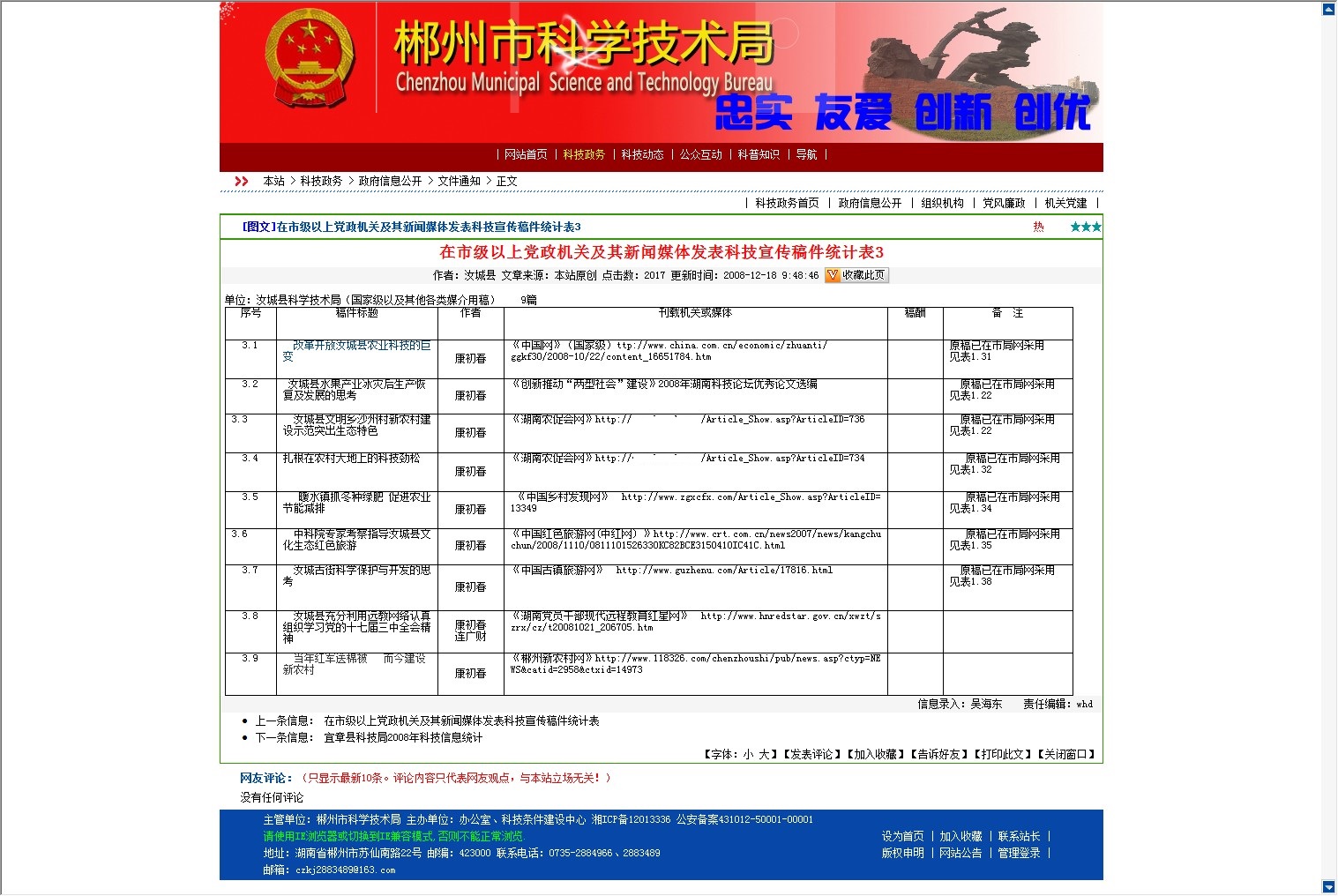 单位:汝城县科学技术局(国家级以及其他各类媒介用稿) 9篇