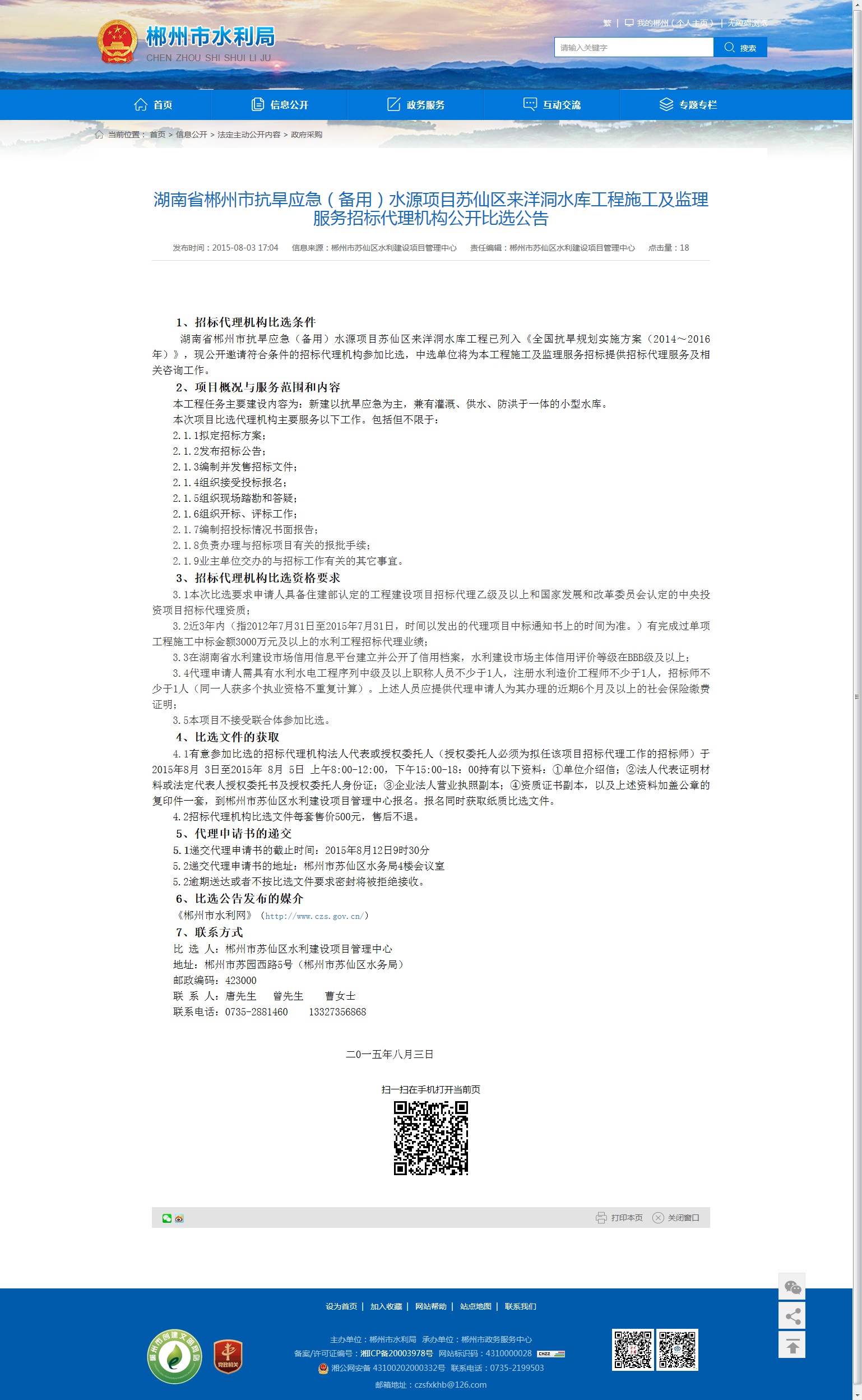比 选 人:郴州市苏仙区水利建设项目管理中心