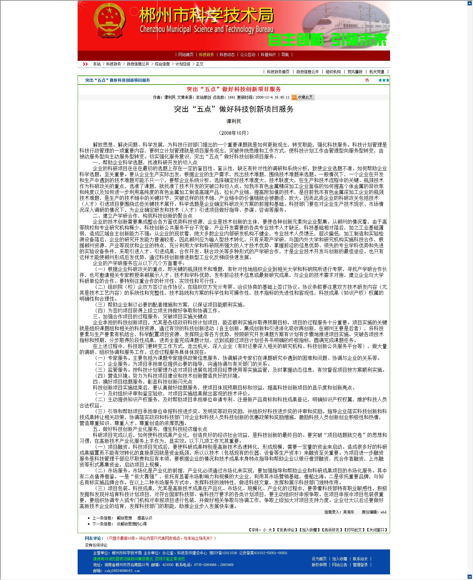 (四)营造环境。努力为科技项目建设和技术创新营造良好的环境。