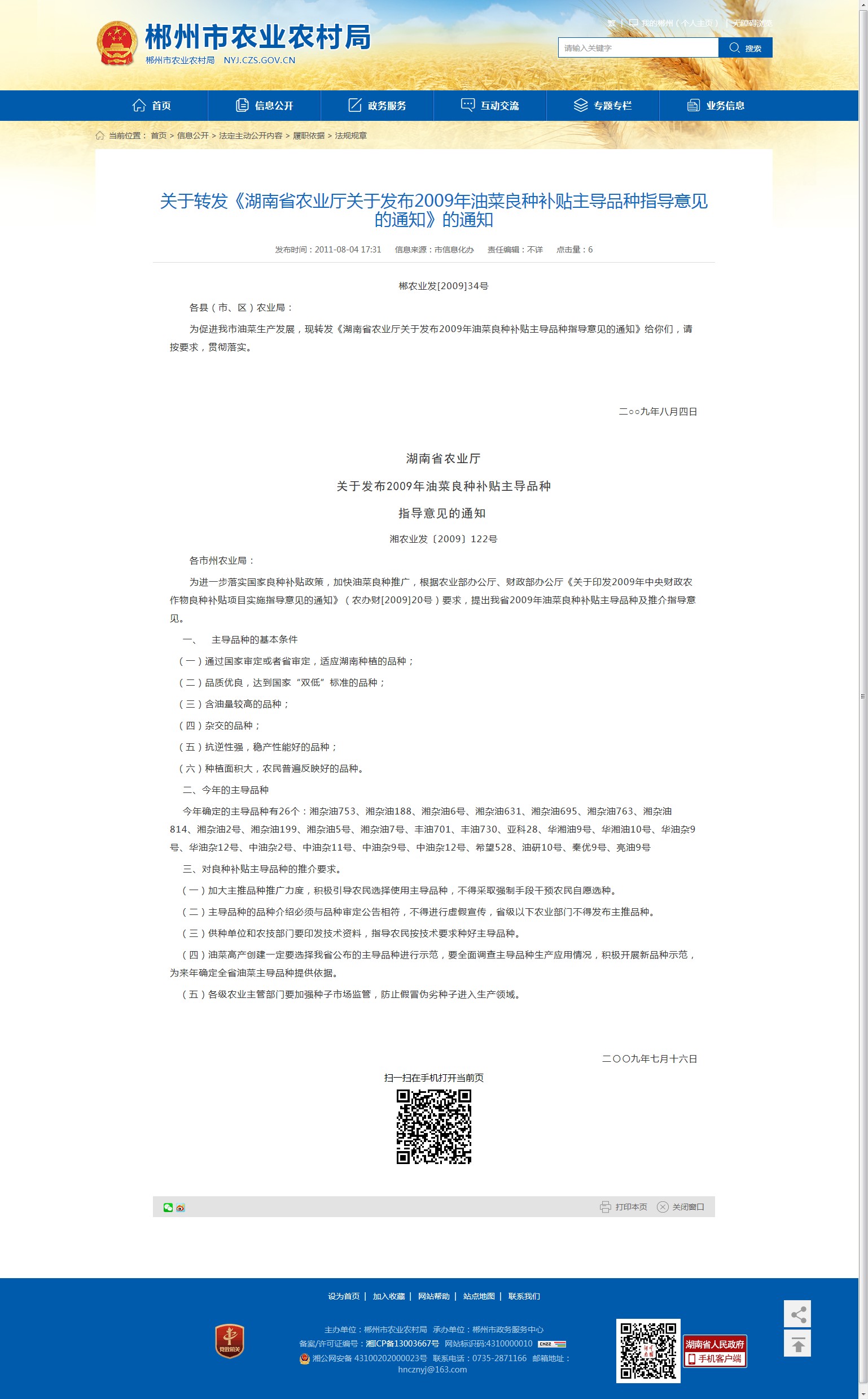 为促进我市油菜生产发展,现转发《湖南省农业厅关于发布2009年油菜良种补贴主导品种指导意见的通知》给你们,请按要求,贯彻落实。