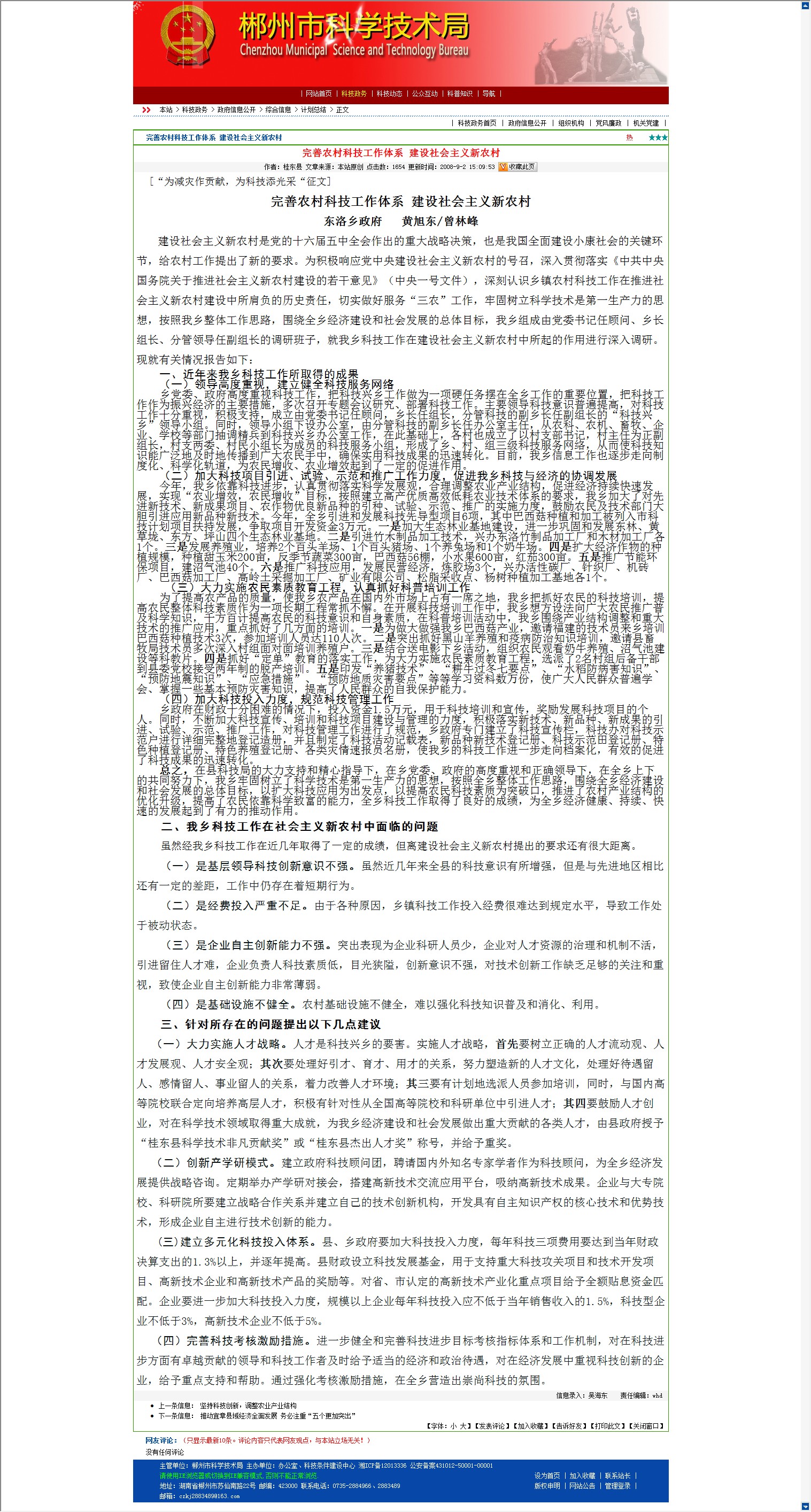 完善农村科技工作体系 建设社会主义新农村
