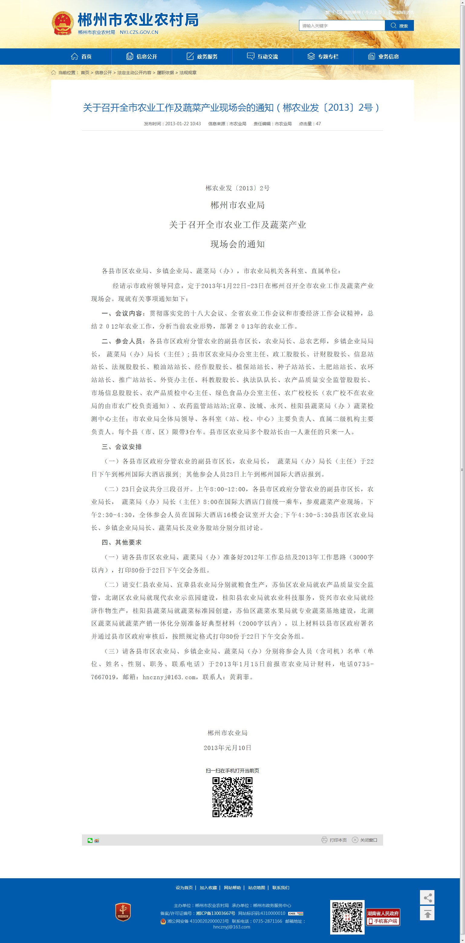 经请示市政府领导同意,定于2013年1月22日-23日在郴州召开全市农业工作及蔬菜产业现场会。现就有关事项通知如下: