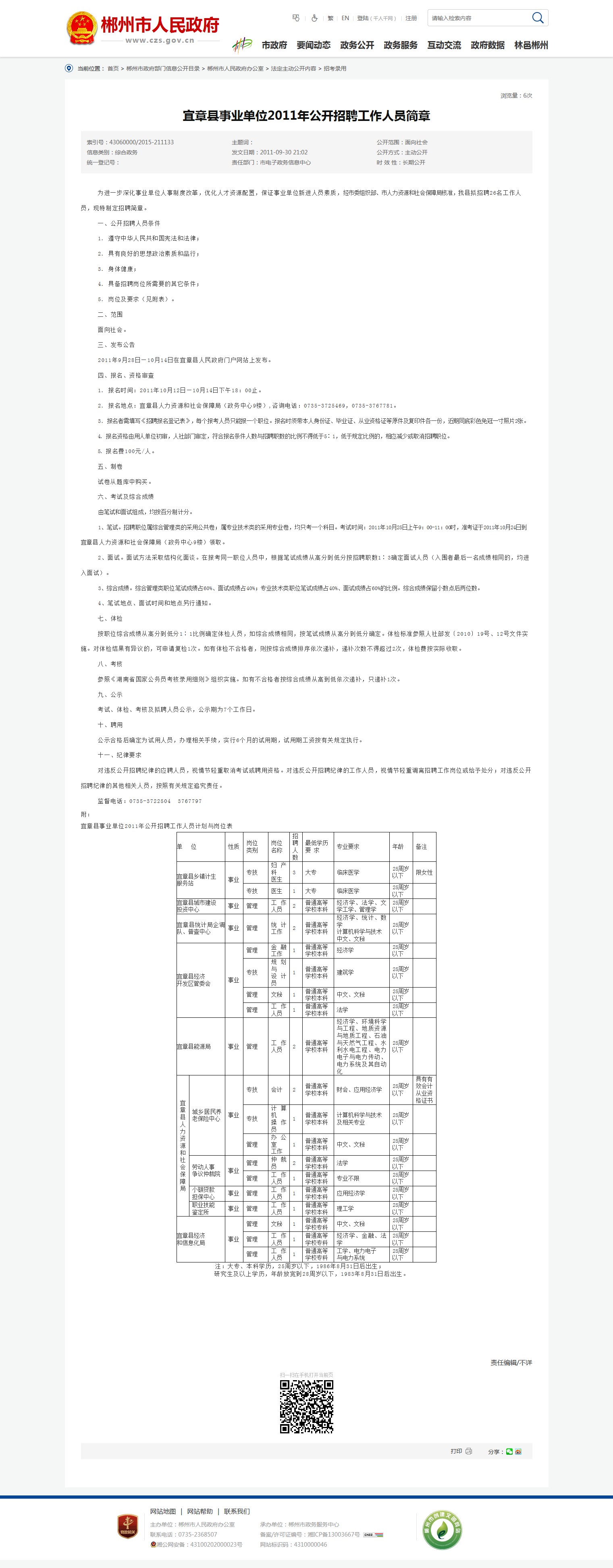 2011年9月28日—10月14日在宜章县人民政府门户网站上发布。