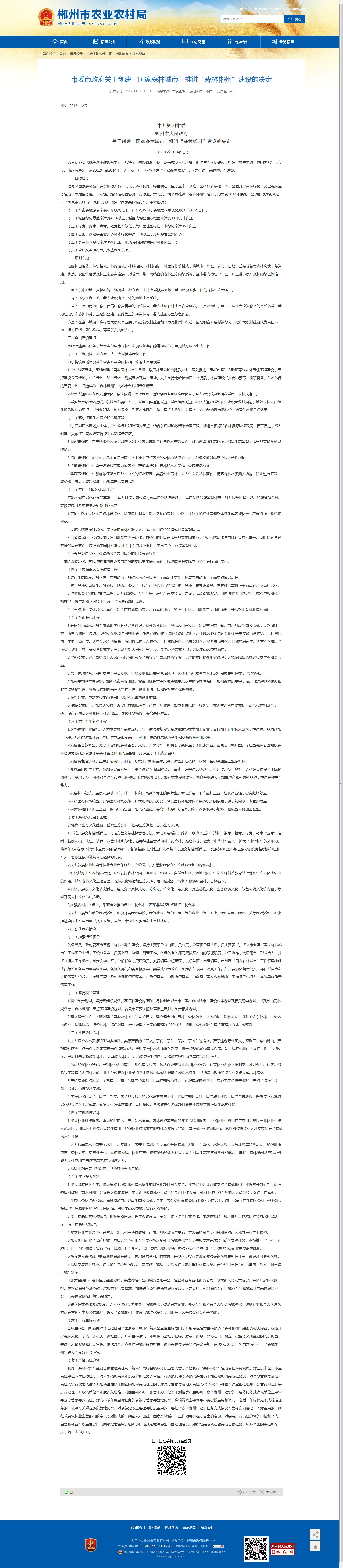 关于创建“国家森林城市”推进“森林郴州”建设的决定