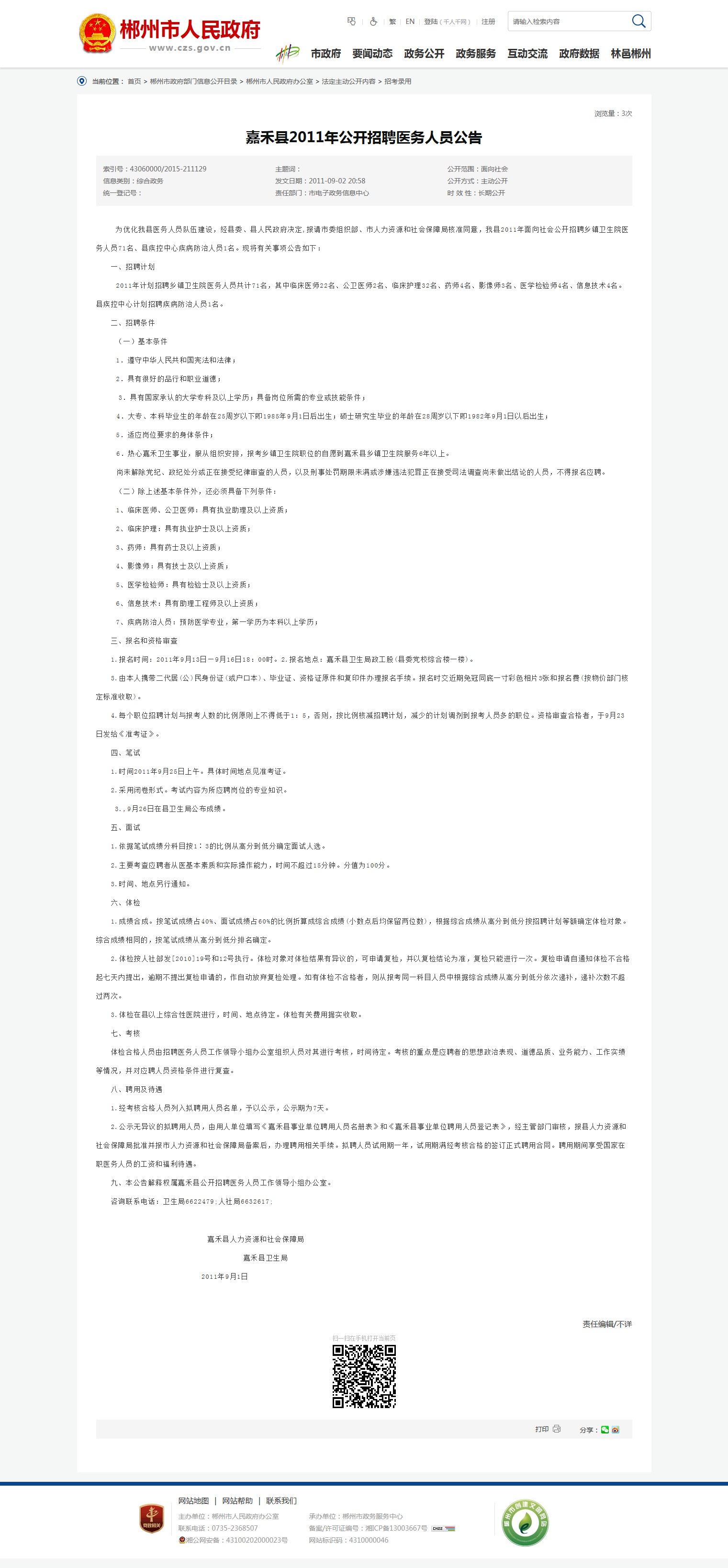 九、本公告解释权属嘉禾县公开招聘医务人员工作领导小组办公室。
