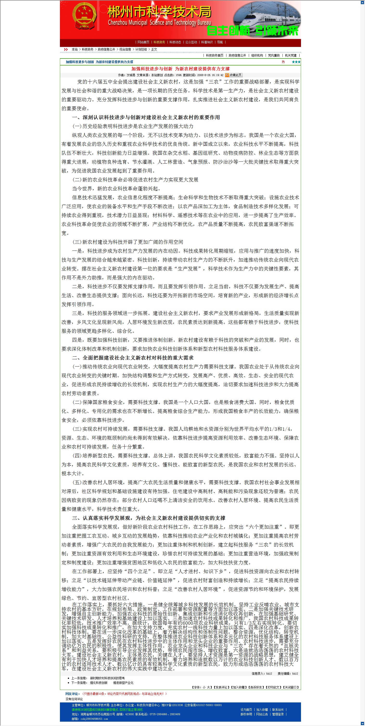 一、深刻认识科技进步与创新对建设社会主义新农村的重要作用