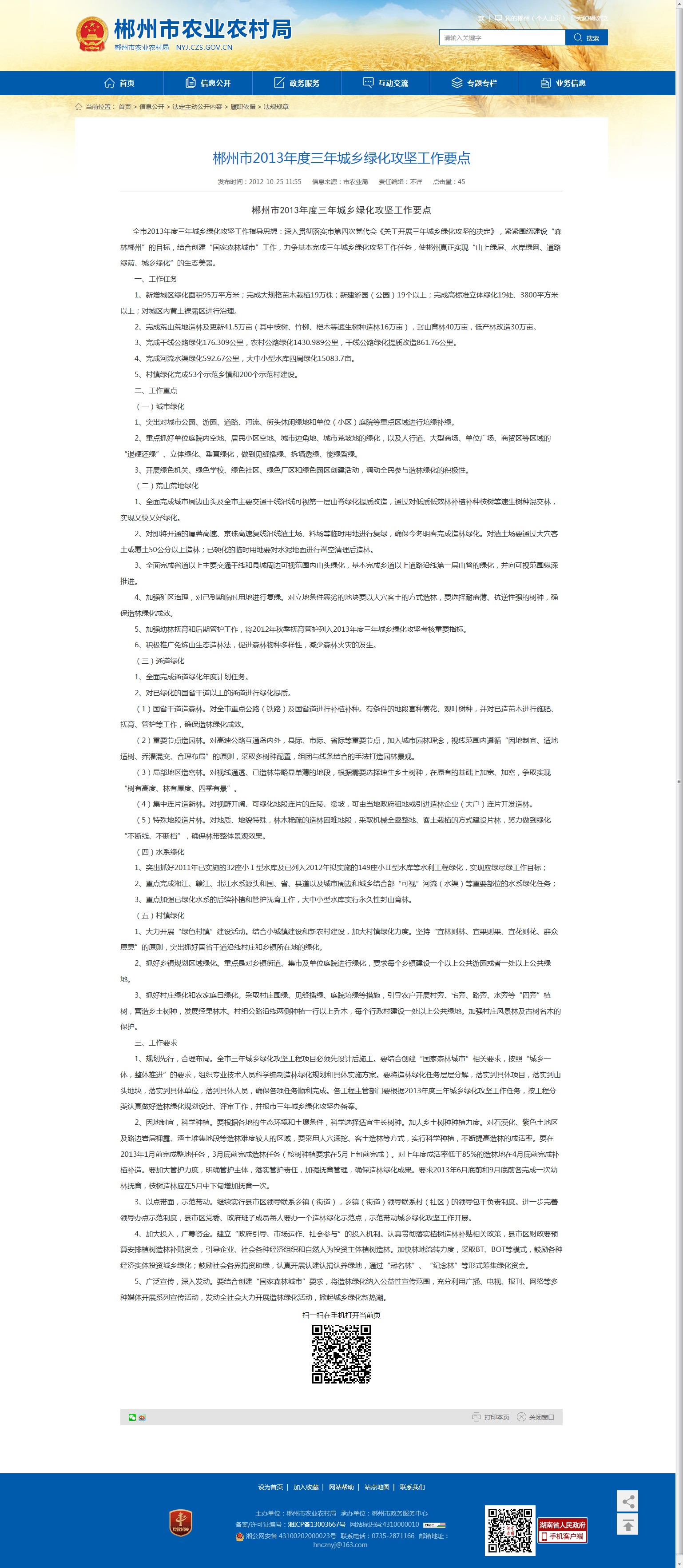 郴州市2013年度三年城乡绿化攻坚工作要点