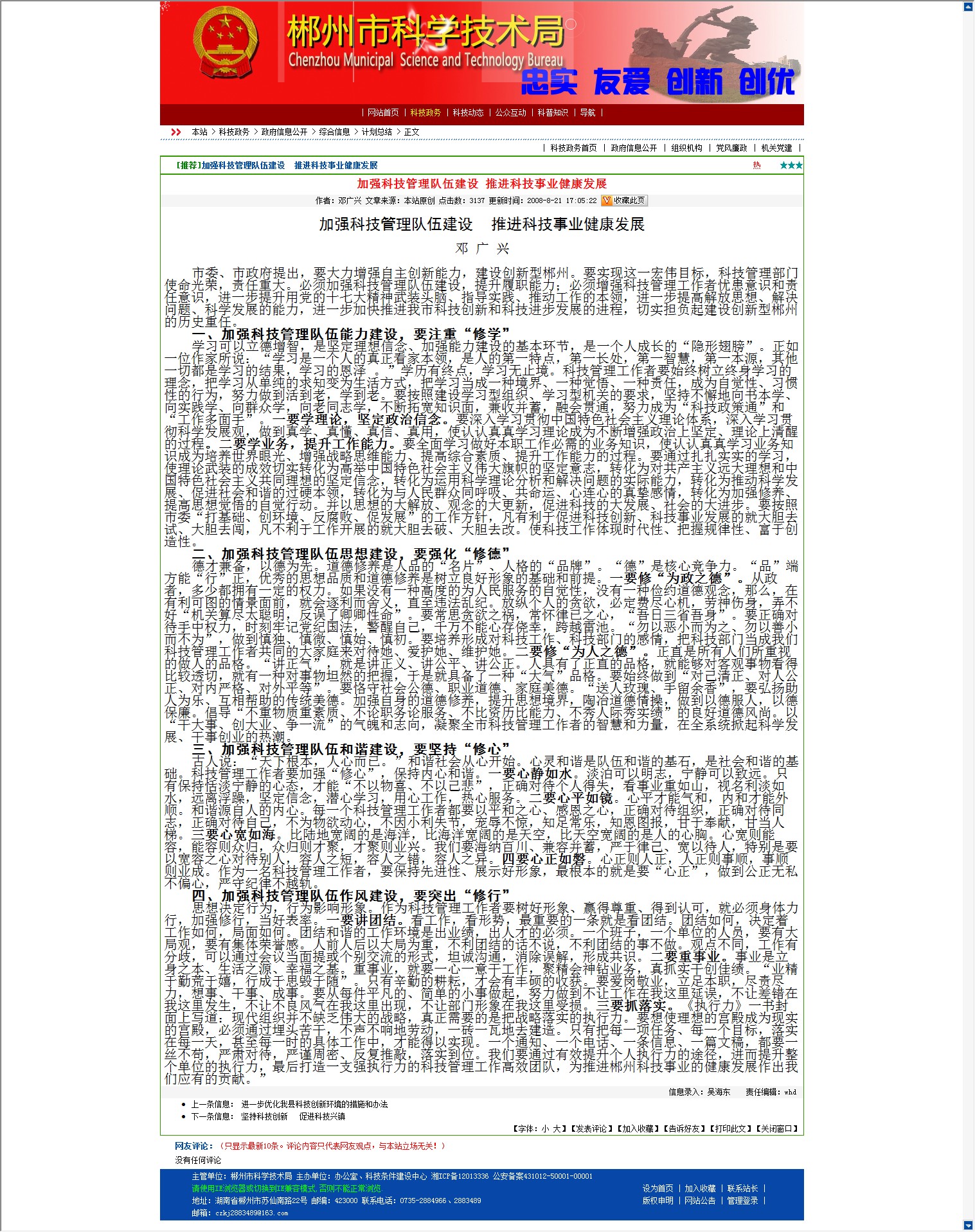 二、加强科技管理队伍思想建设,要强化“修德”