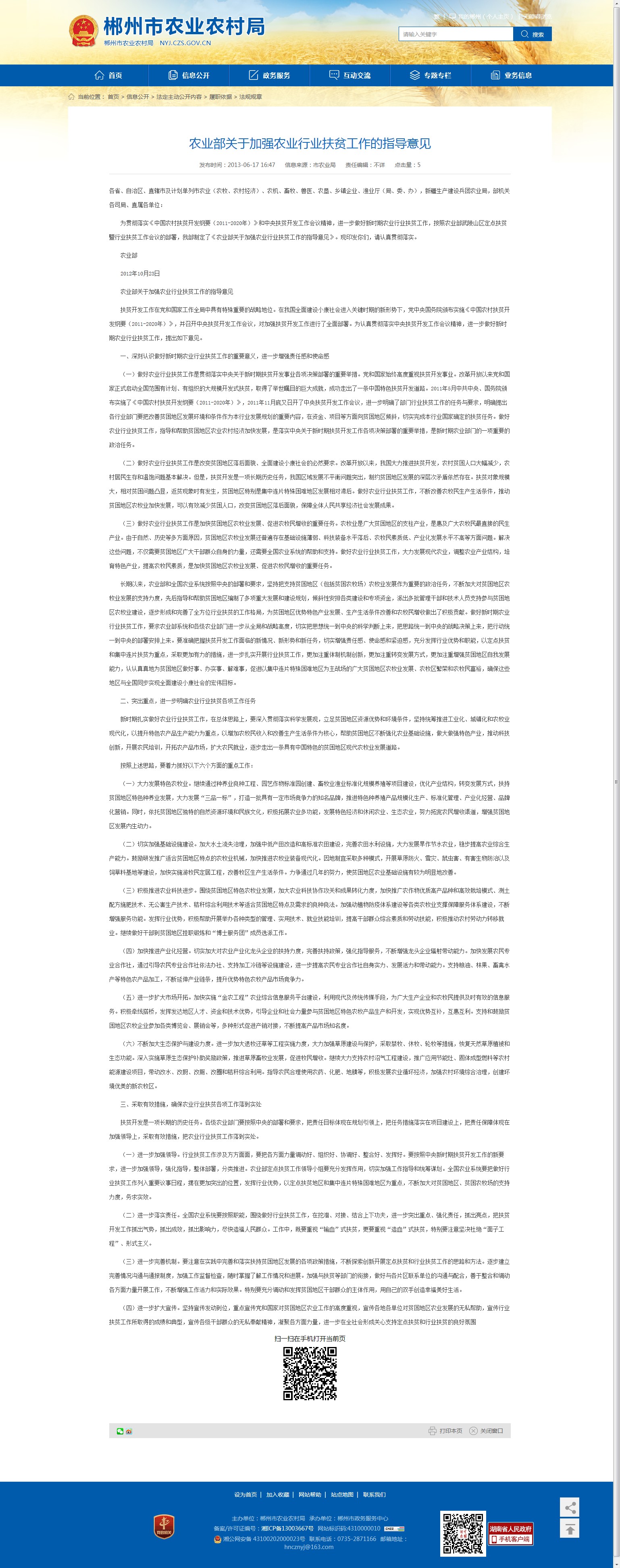 为贯彻落实《中国农村扶贫开发纲要(2011-2020年)》和中央扶贫开发工作会议精神,进一步做好新时期农业行业扶贫工作,按照农业部武陵山区定点扶贫暨行业扶贫工作会议的部署,我部制定了《农业部关于加强农业行业扶贫工作的指导意见》。现印发你们,请认真贯彻落实。