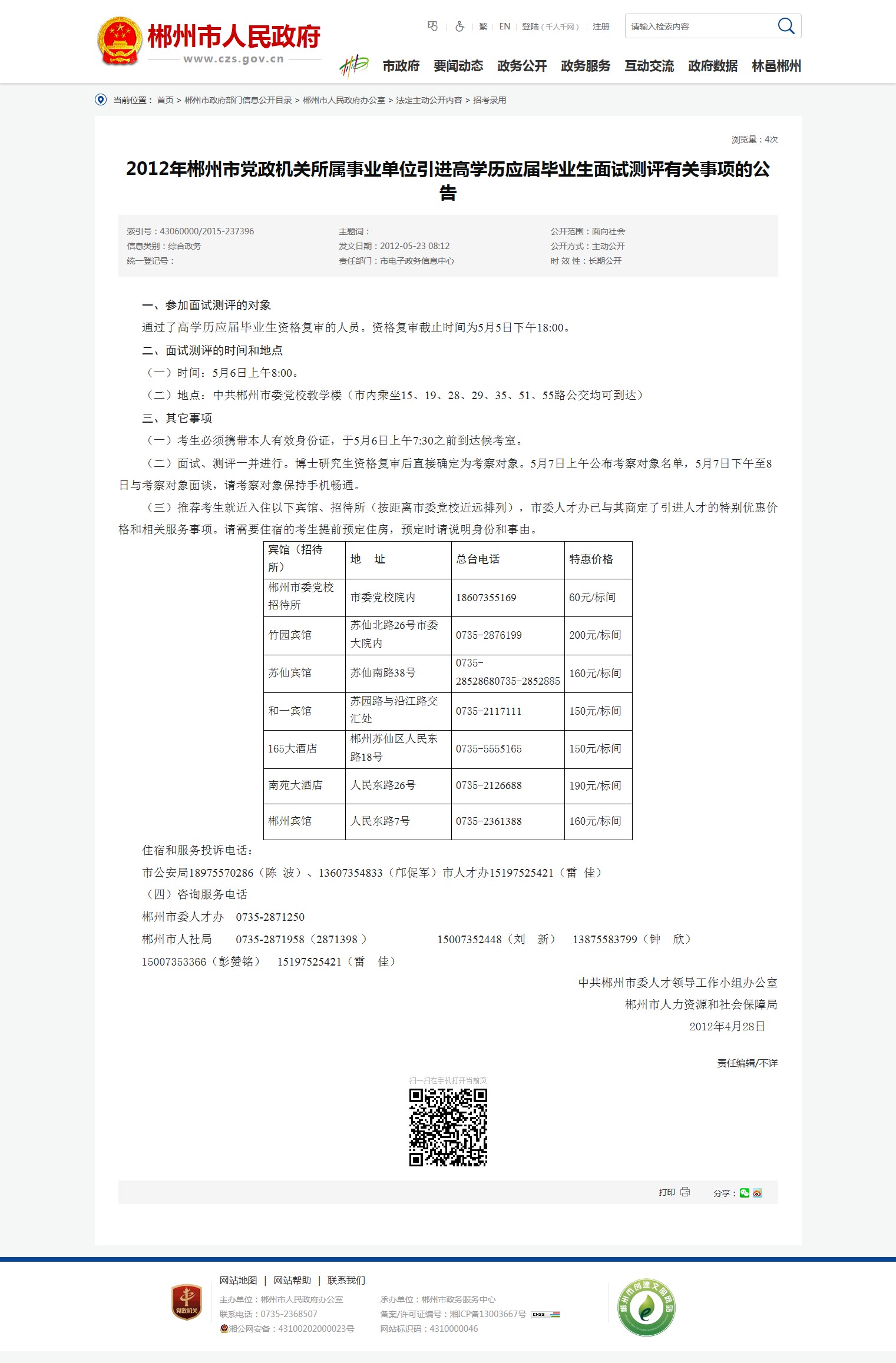 郴州市人社局 0735-2871958(2871398 ) 15007352448(刘 新) 13875583799(钟 欣)