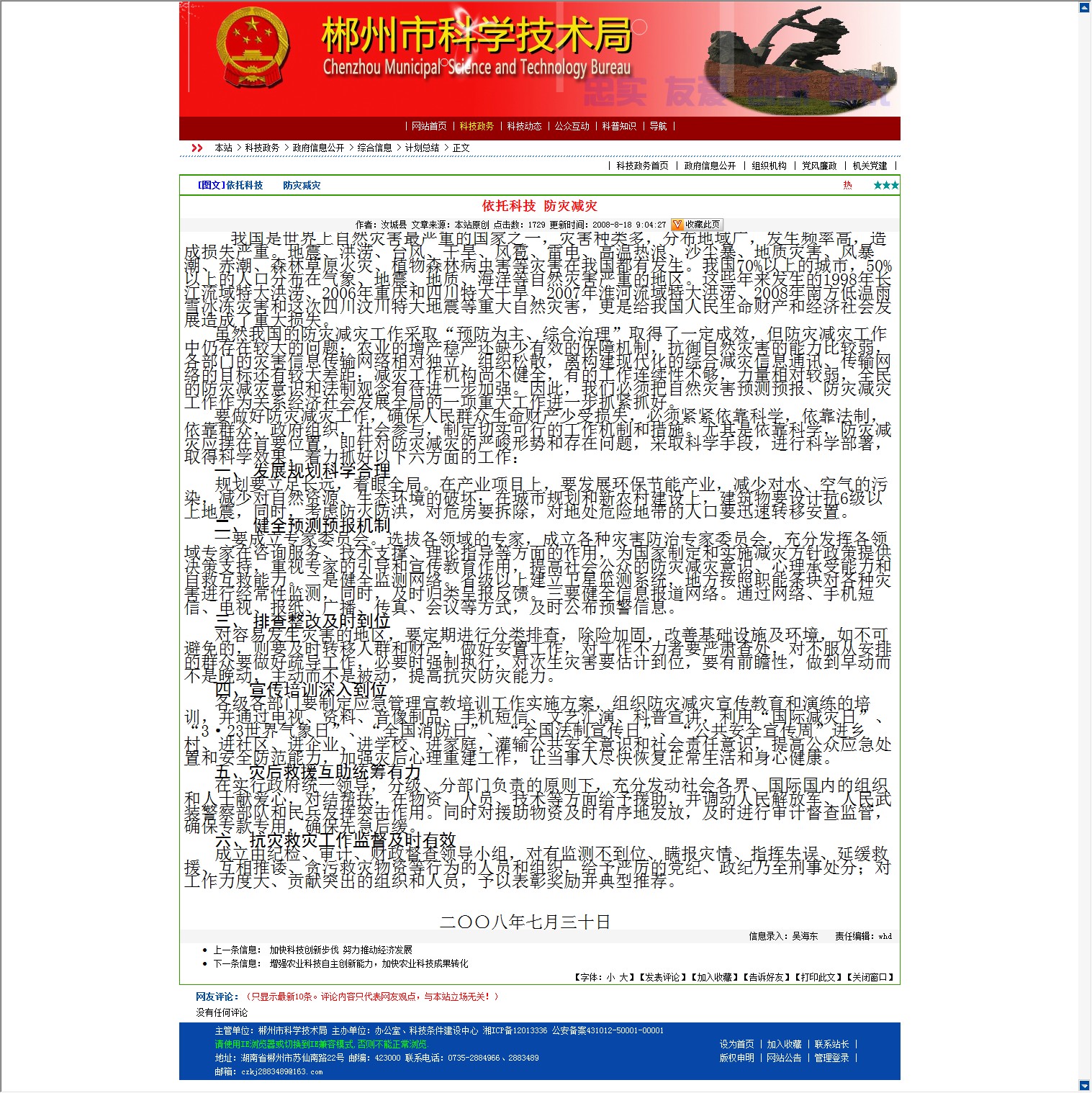 六、抗灾救灾工作监督及时有效