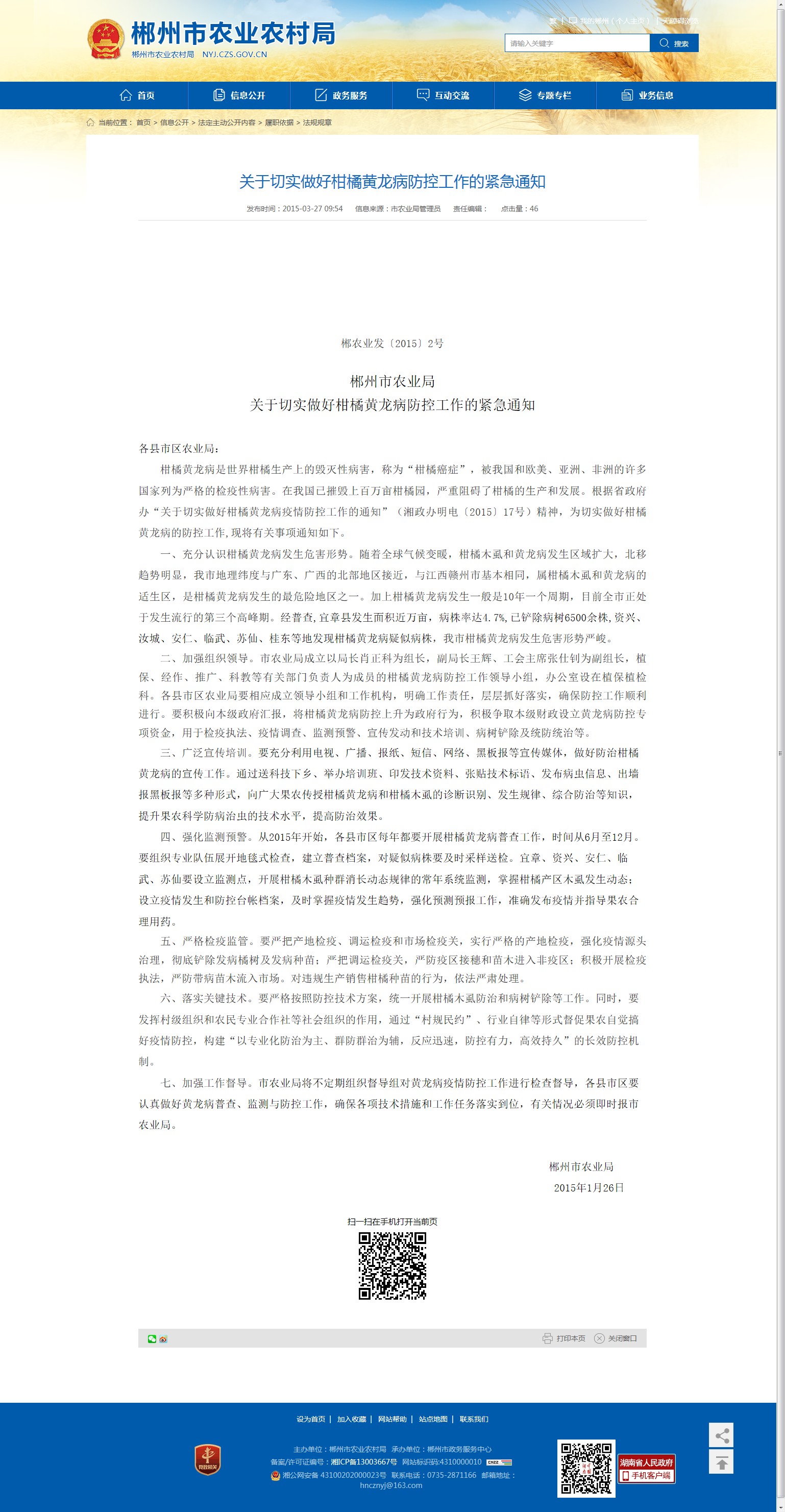 关于切实做好柑橘黄龙病防控工作的紧急通知