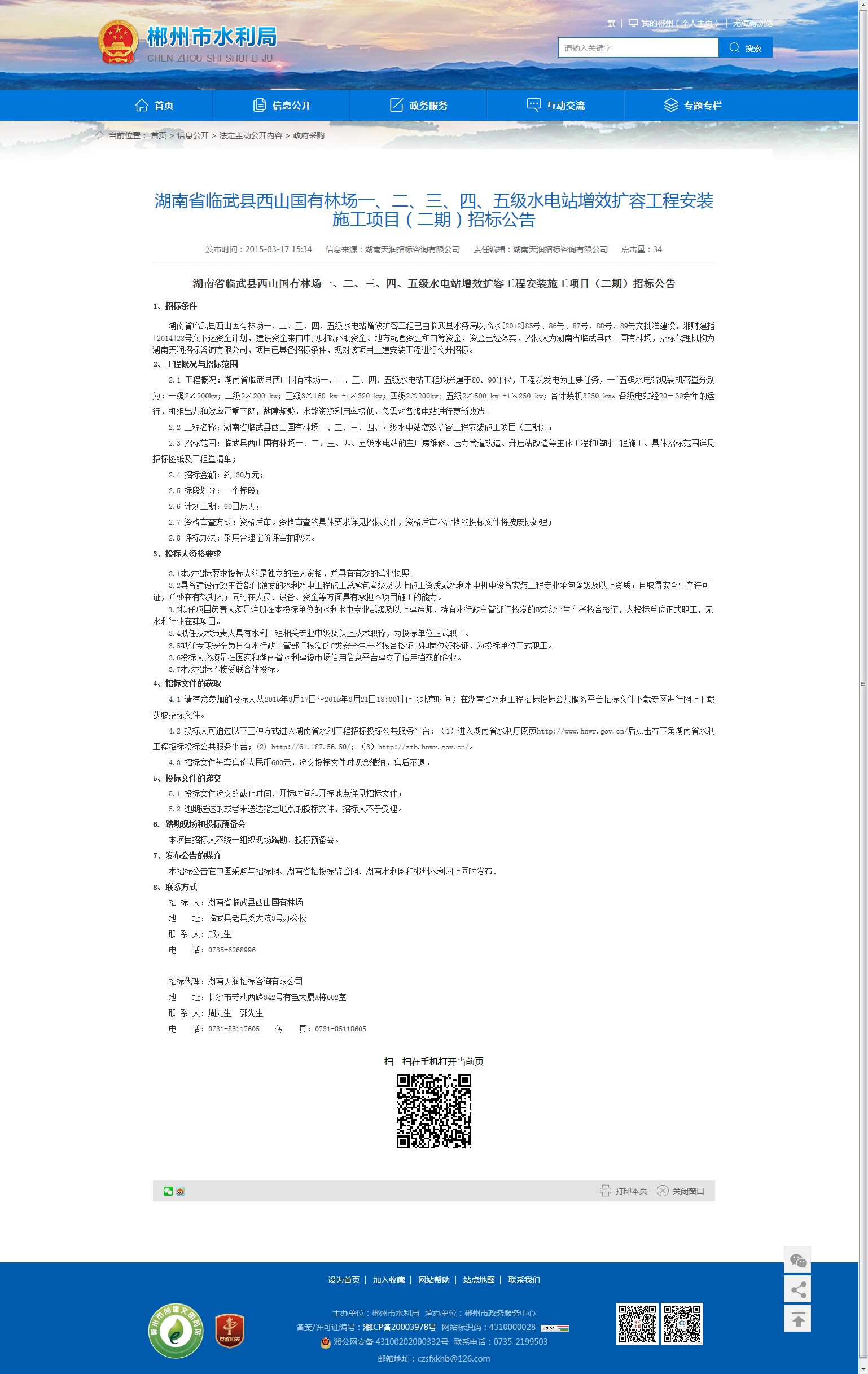 本招标公告在中国采购与招标网、湖南省招投标监管网、湖南水利网和郴州水利网上同时发布。