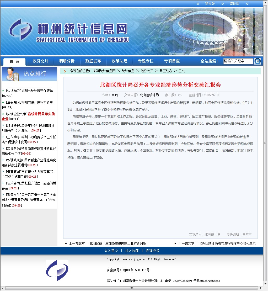 为提前做好前三季度全区经济形势预测分析工作,及早发现经济运行中出现的新情况、新问题,加强全区经济监测和分析。9月7-11日,北湖区统计局召开了各专业经济形势分析交流汇报会。