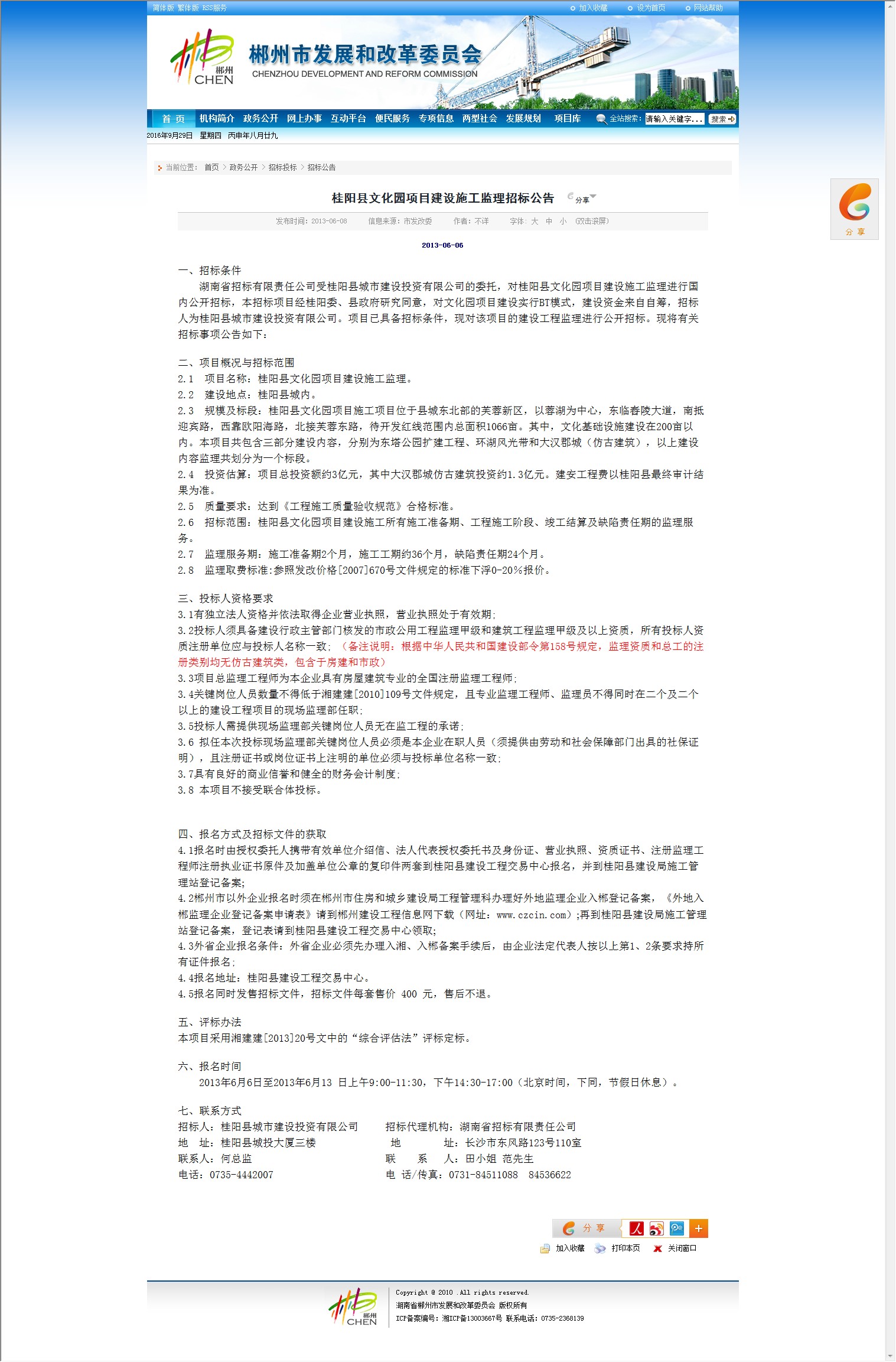 招标人:桂阳县城市建设投资有限公司 招标代理机构:湖南省招标有限责任公司