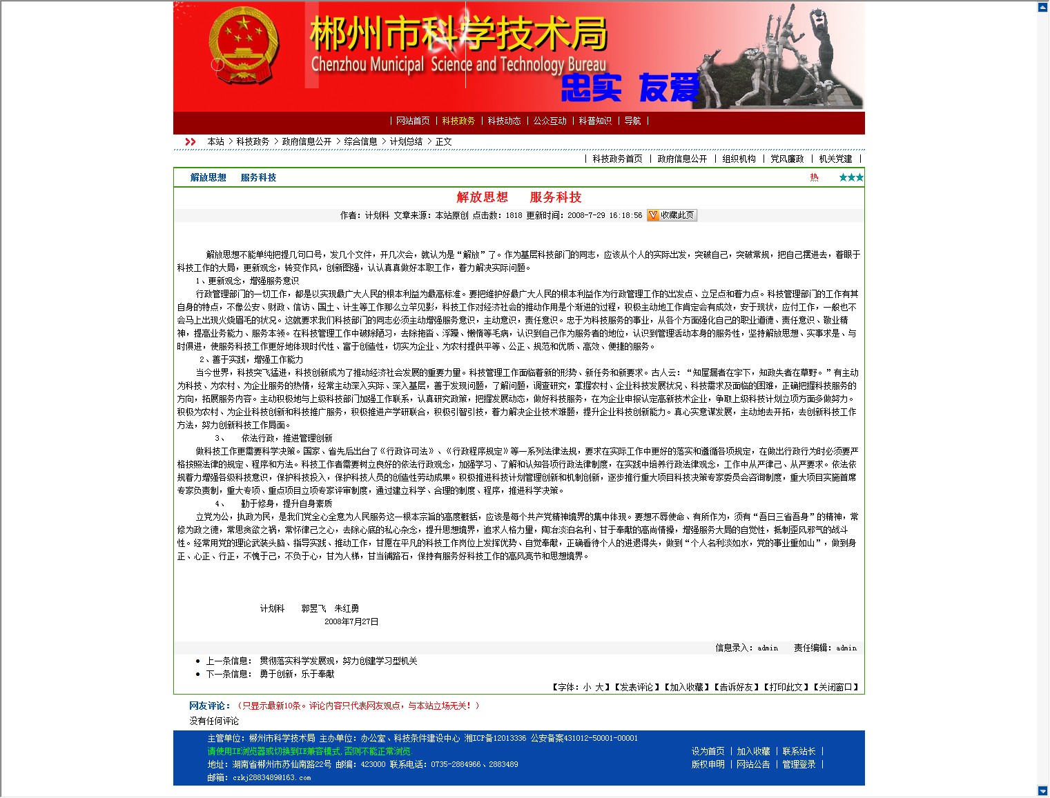 解放思想不能单纯把提几句口号,发几个文件,开几次会,就认为是“解放”了。作为基层科技部门的同志,应该从个人的实际出发,突破自己,突破常规,把自己摆进去,着眼于科技工作的大局,更新观念,转变作风,创新图强,认认真真做好本职工作,着力解决实际问题。