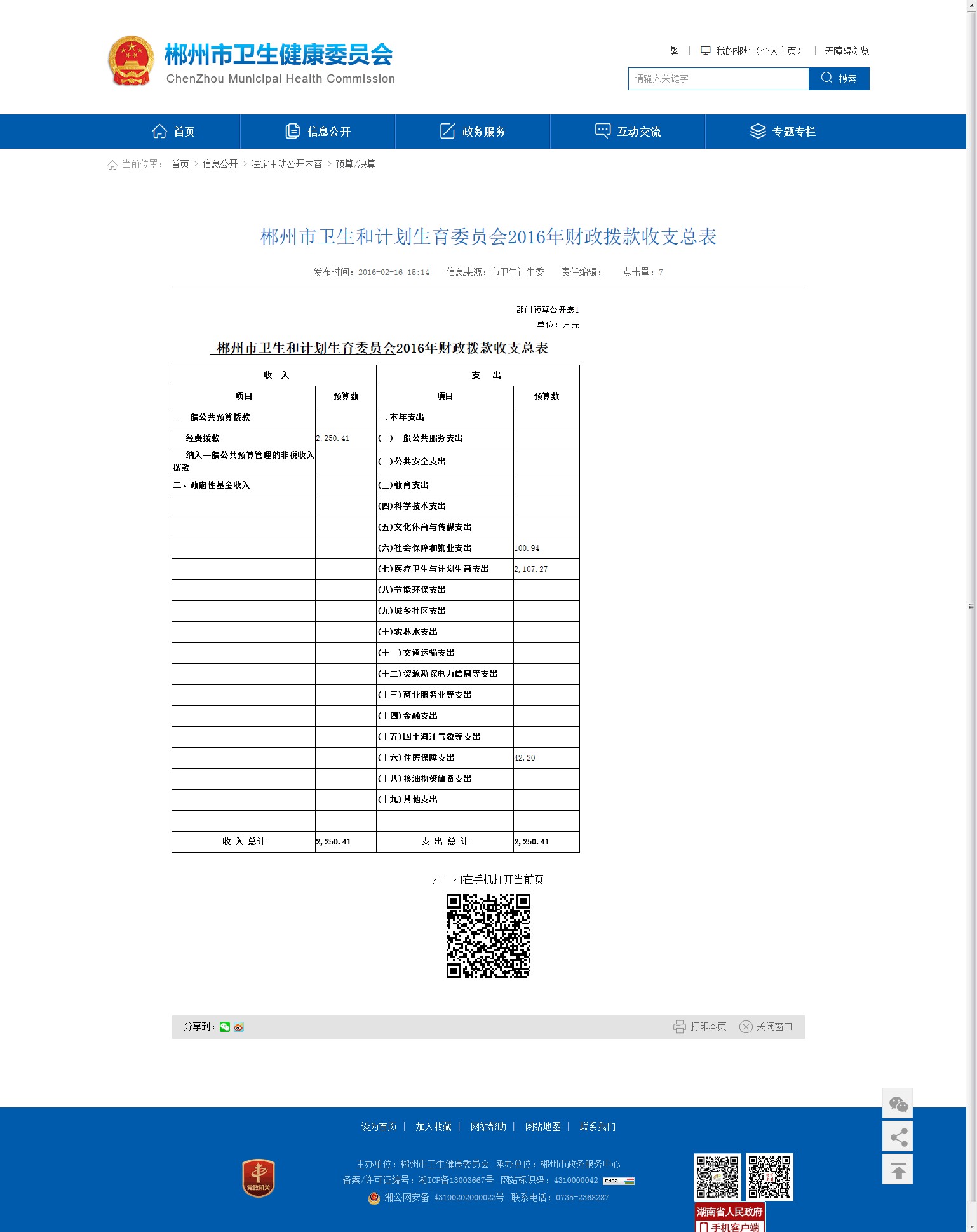 | 郴州市卫生和计划生育委员会2016年财政拨款收支总表 | |||