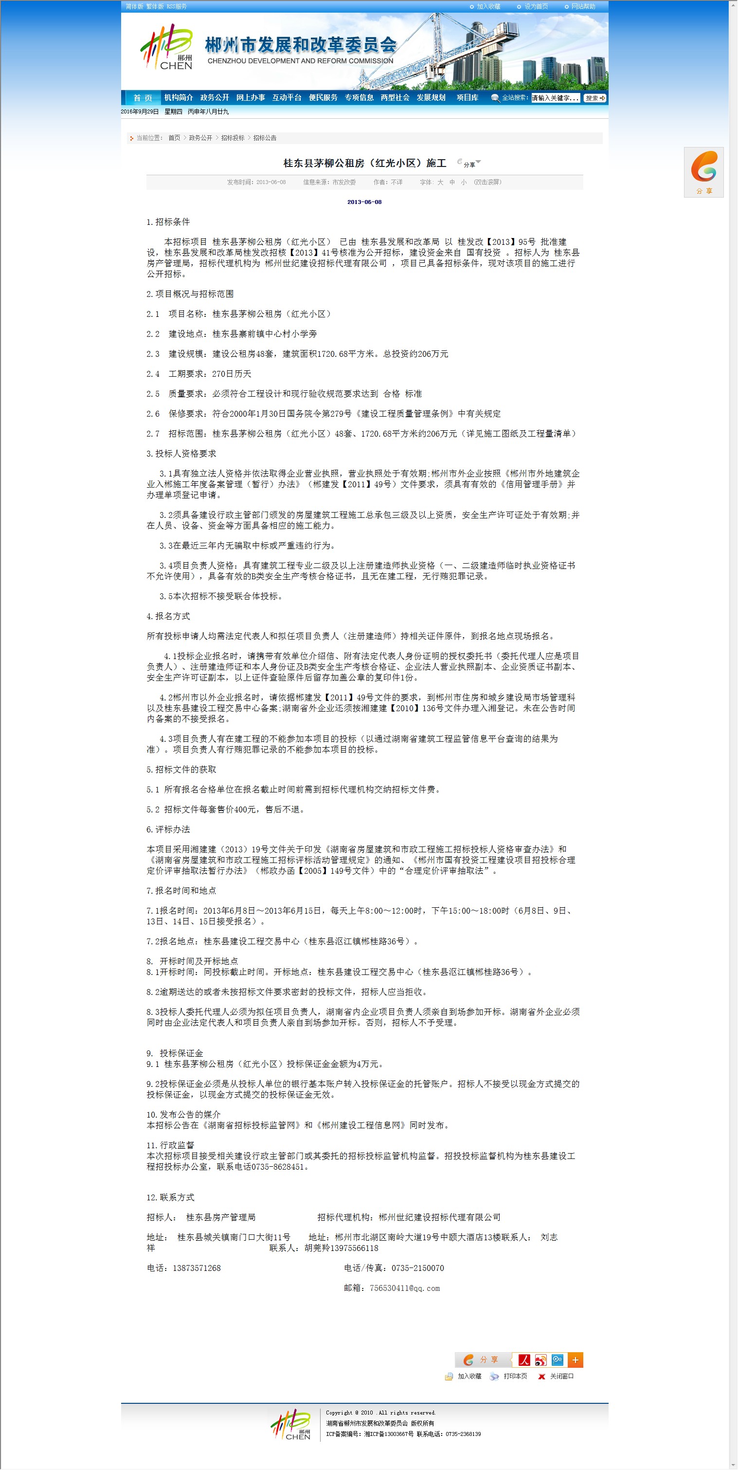 本招标公告在《湖南省招标投标监管网》和《郴州建设工程信息网》同时发布。