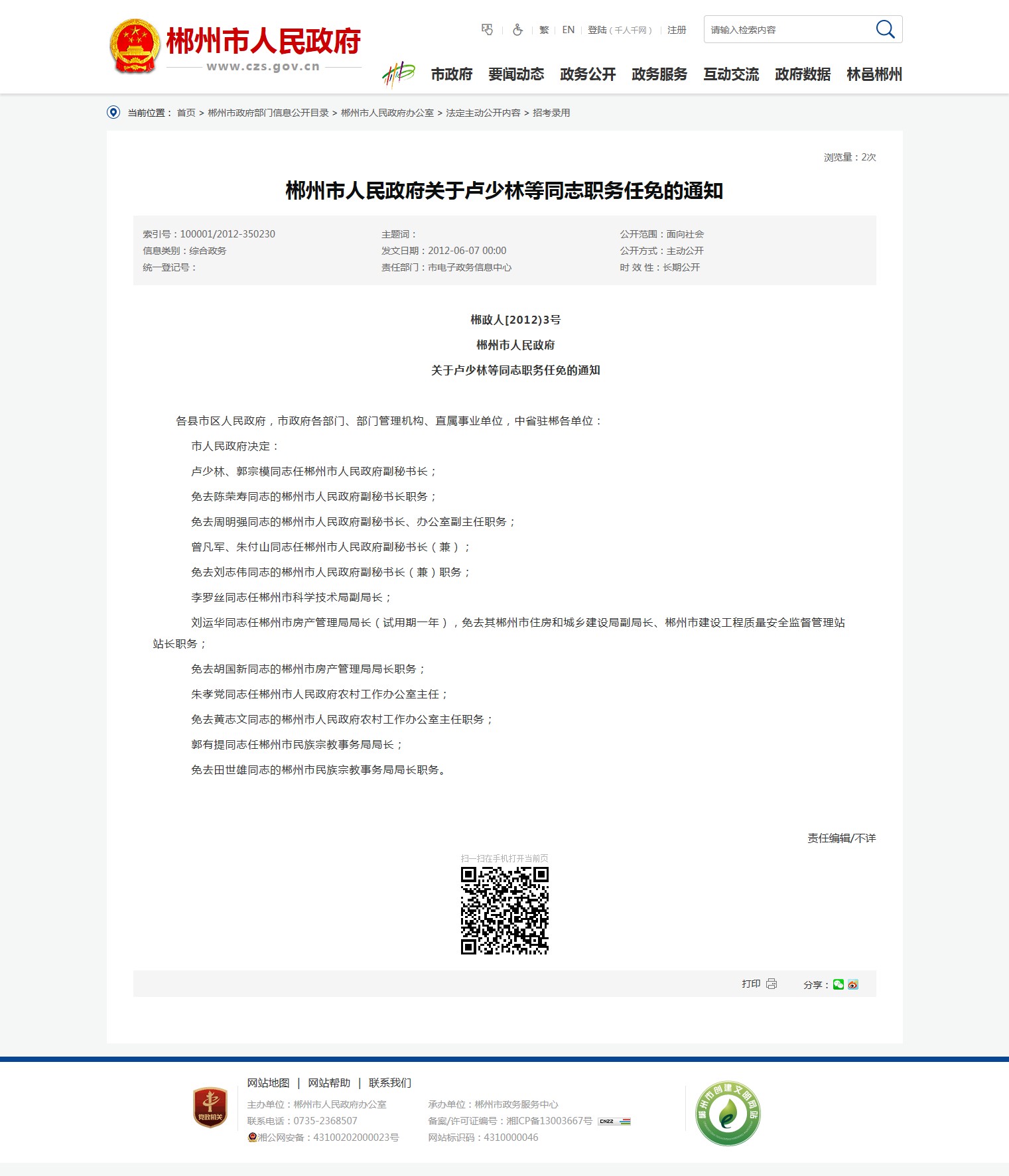 • 发文字号:郴政人[2012)3号