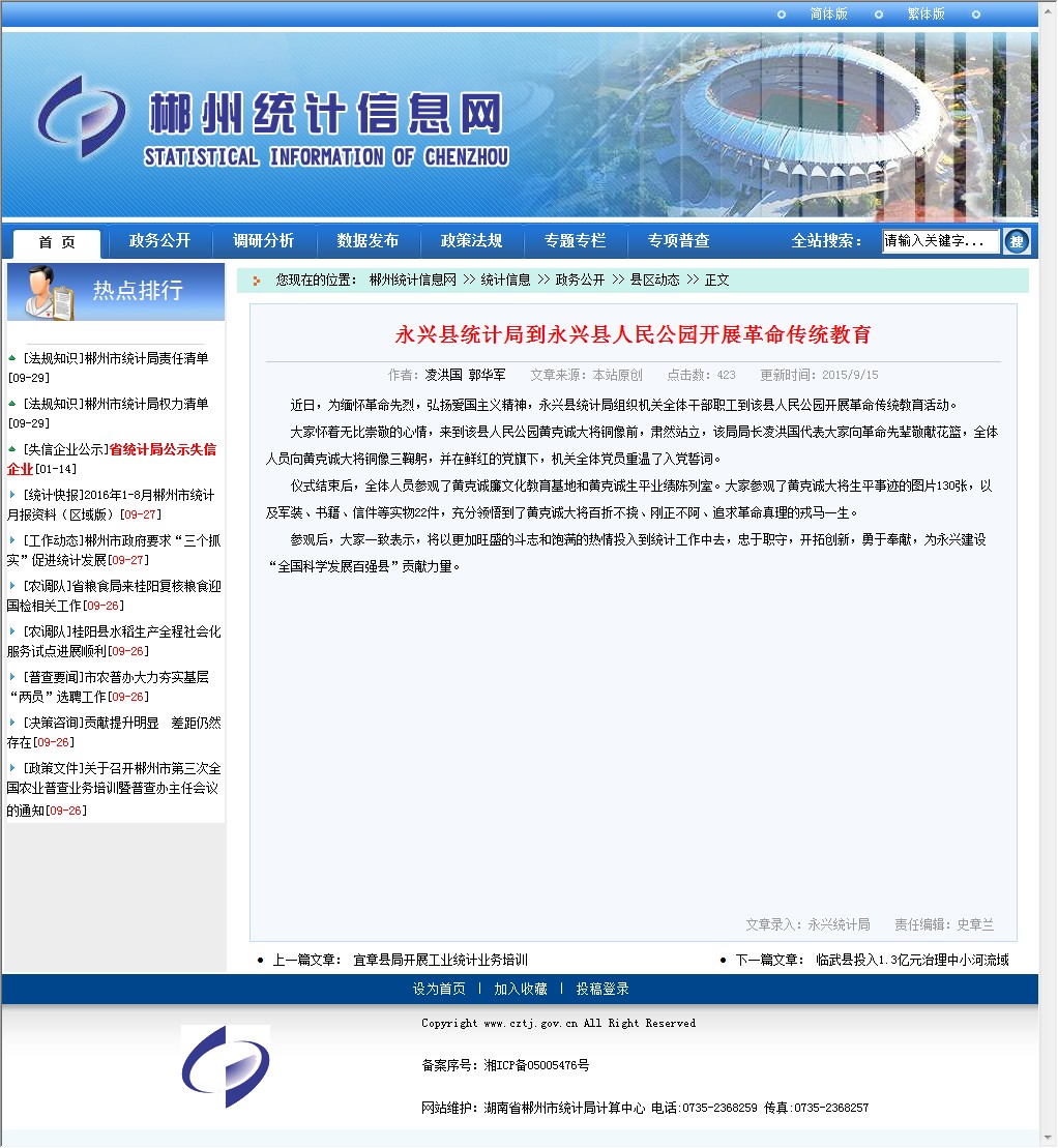 近日,为缅怀革命先烈,弘扬爱国主义精神,永兴县统计局组织机关全体干部职工到该县人民公园开展革命传统教育活动。