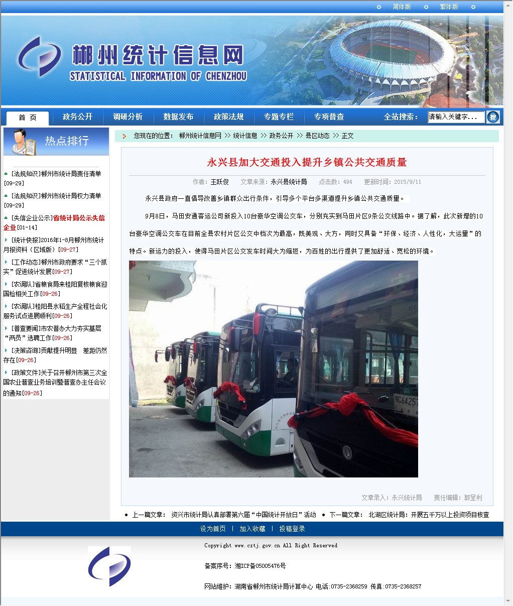 发文机构:郴州市统计局