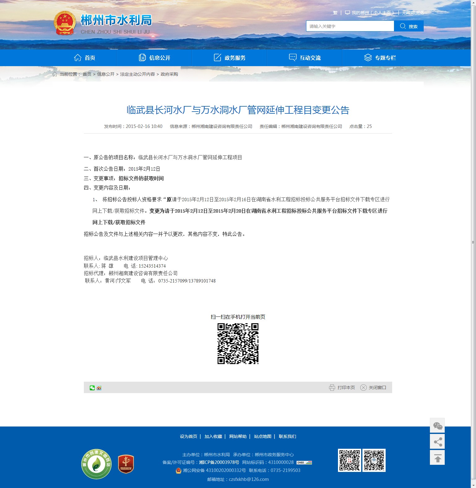 临武县长河水厂与万水洞水厂管网延伸工程目变更公告
