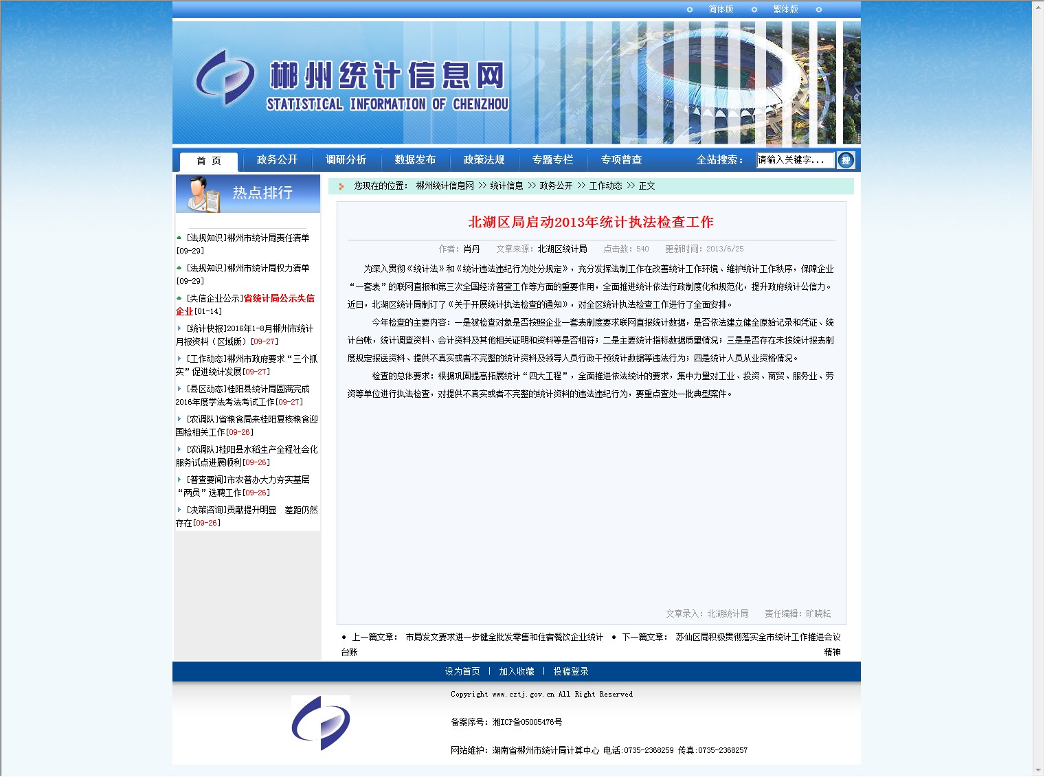 为深入贯彻《统计法》和《统计违法违纪行为处分规定》,充分发挥法制工作在改善统计工作环境、维护统计工作秩序,保障企业“一套表”的联网直报和第三次全国经济普查工作等方面的重要作用,全面推进统计依法行政制度化和规范化,提升政府统计公信力。近日,北湖区统计局制订了《关于开展统计执法检查的通知》,对全区统计执法检查工作进行了全面安排。