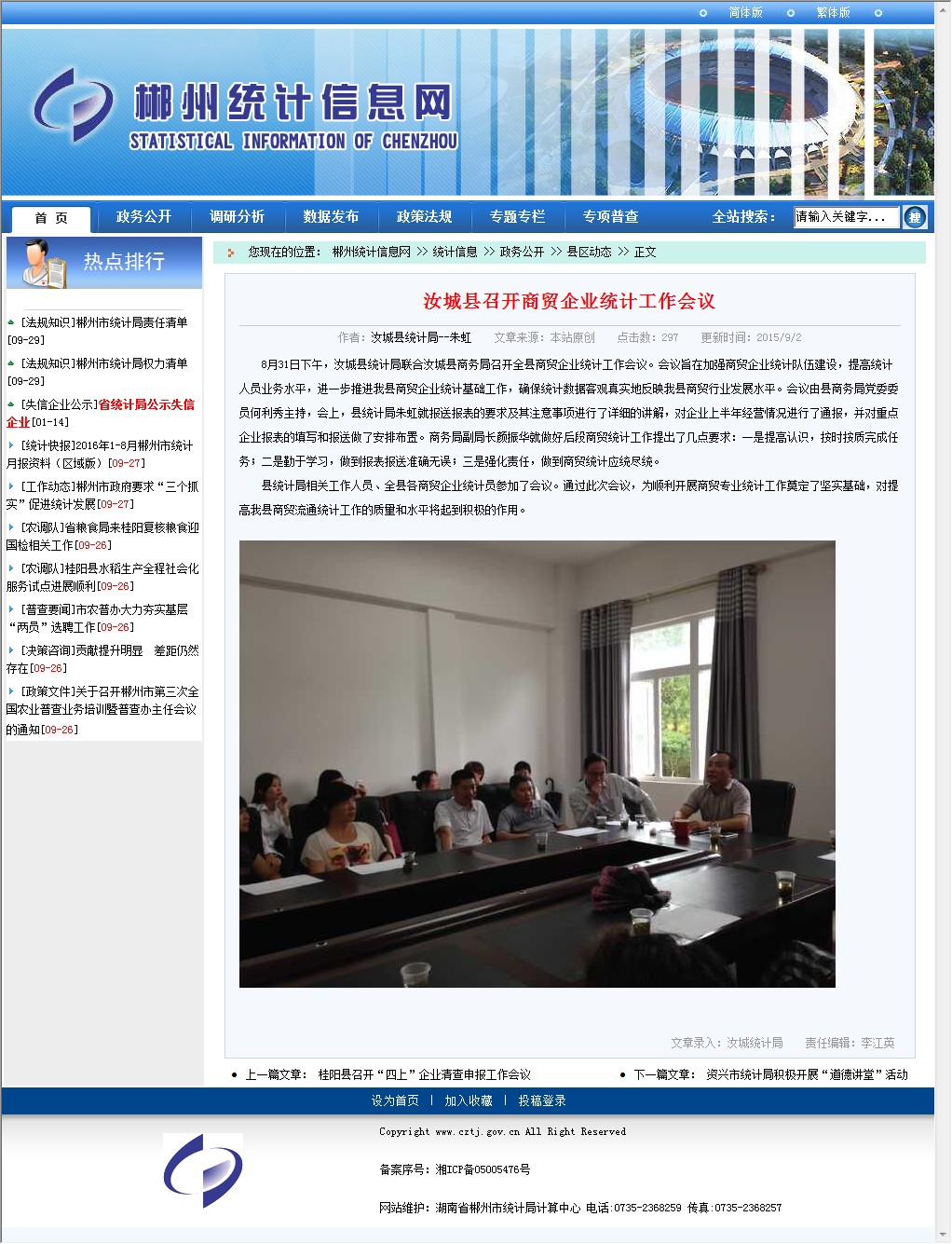 8月31日下午,汝城县统计局联合汝城县商务局召开全县商贸企业统计工作会议。会议旨在加强商贸企业统计队伍建设,提高统计人员业务水平,进一步推进我县商贸企业统计基础工作,确保统计数据客观真实地反映我县商贸行业发展水平。会议由县商务局党委委员何利秀主持,会上,县统计局朱虹就报送报表的要求及其注意事项进行了详细的讲解,对企业上半年经营情况进行了通报,并对重点企业报表的填写和报送做了安排布置。商务局副局长颜振华就做好后段商贸统计工作提出了几点要求:一是提高认识,按时按质完成任务;二是勤于学习,做到报表报送准确无误;三是强化责任,做到商贸统计应统尽统。