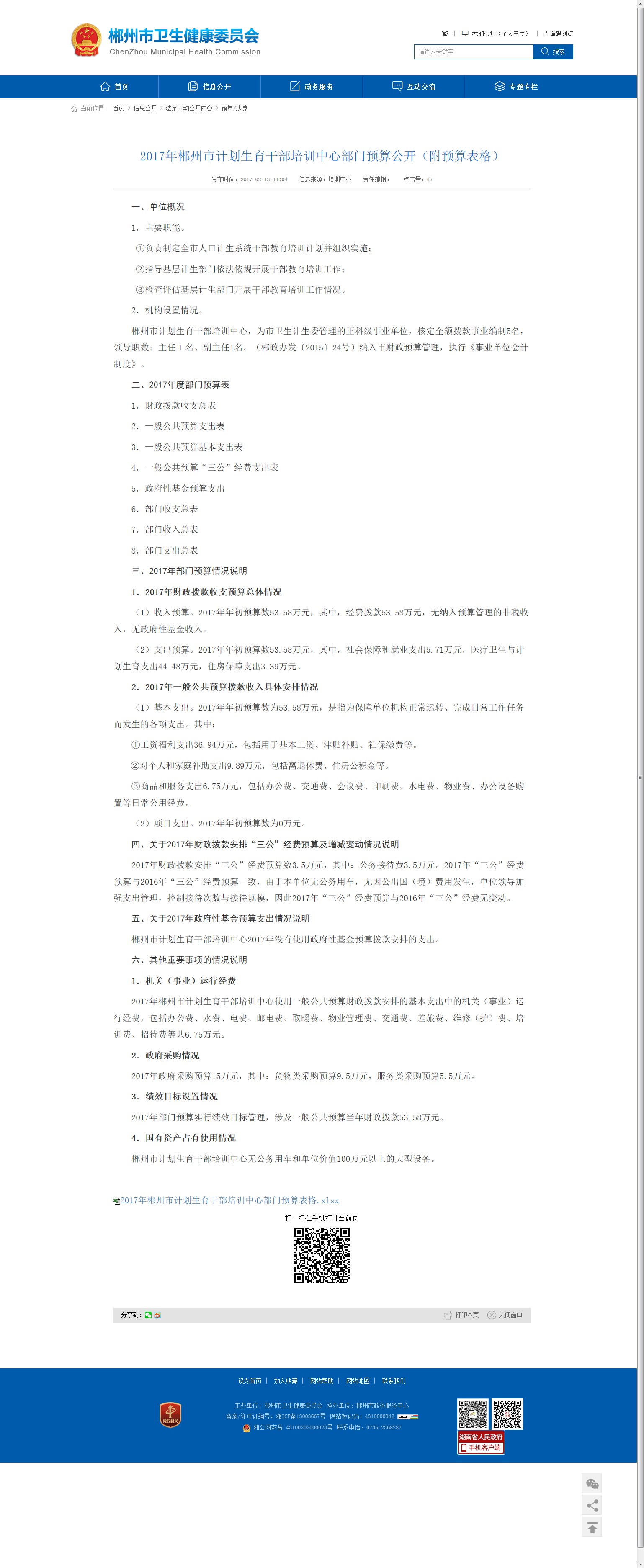 2017年郴州市计划生育干部培训中心使用一般公共预算财政拨款安排的基本支出中的机关(事业)运行经费,包括办公费、水费、电费、邮电费、取暖费、物业管理费、交通费、差旅费、维修(护)费、培训费、招待费等共6.75万元。