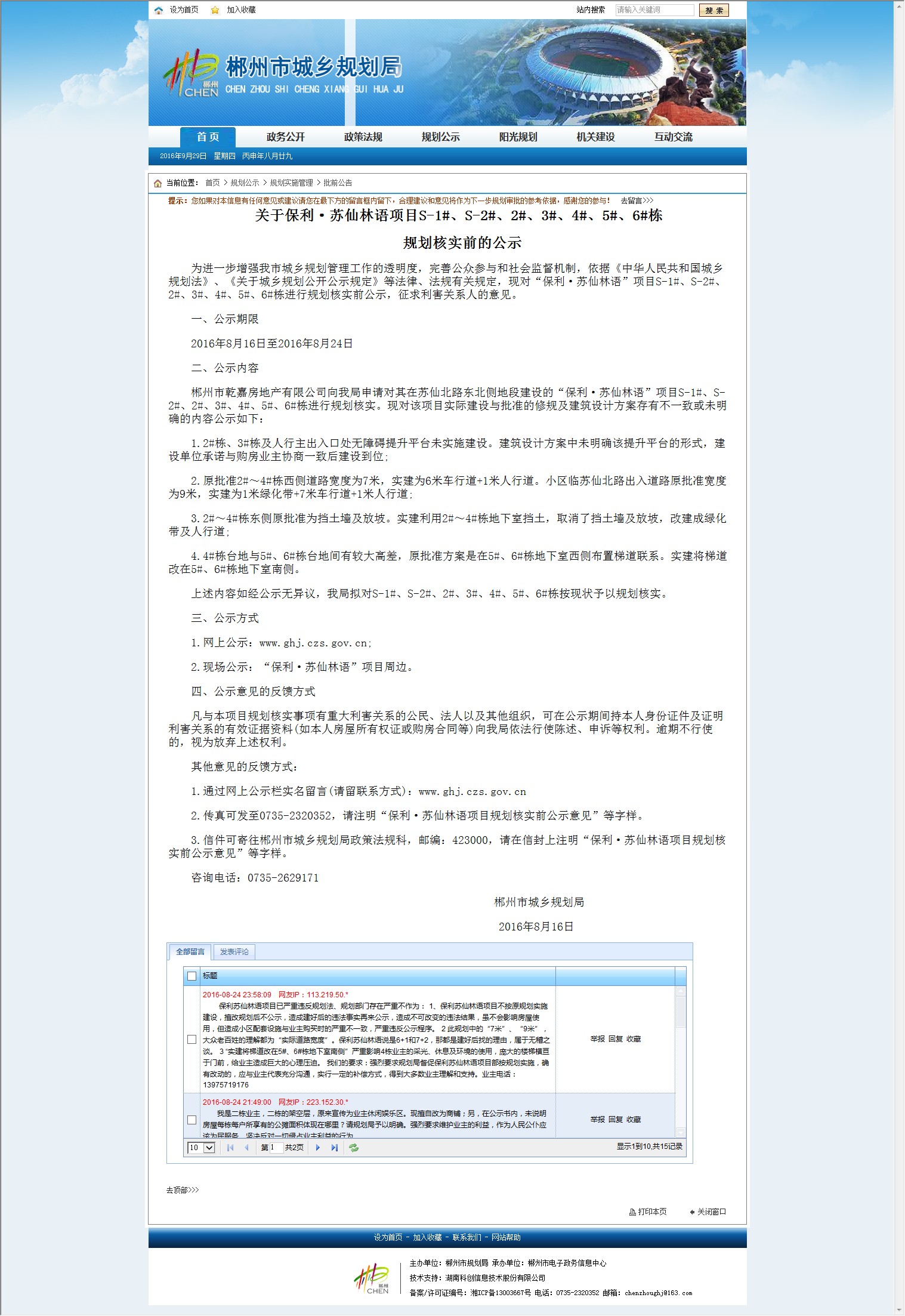 2.传真可发至0735-2320352,请注明“保利·苏仙林语项目规划核实前公示意见”等字样。