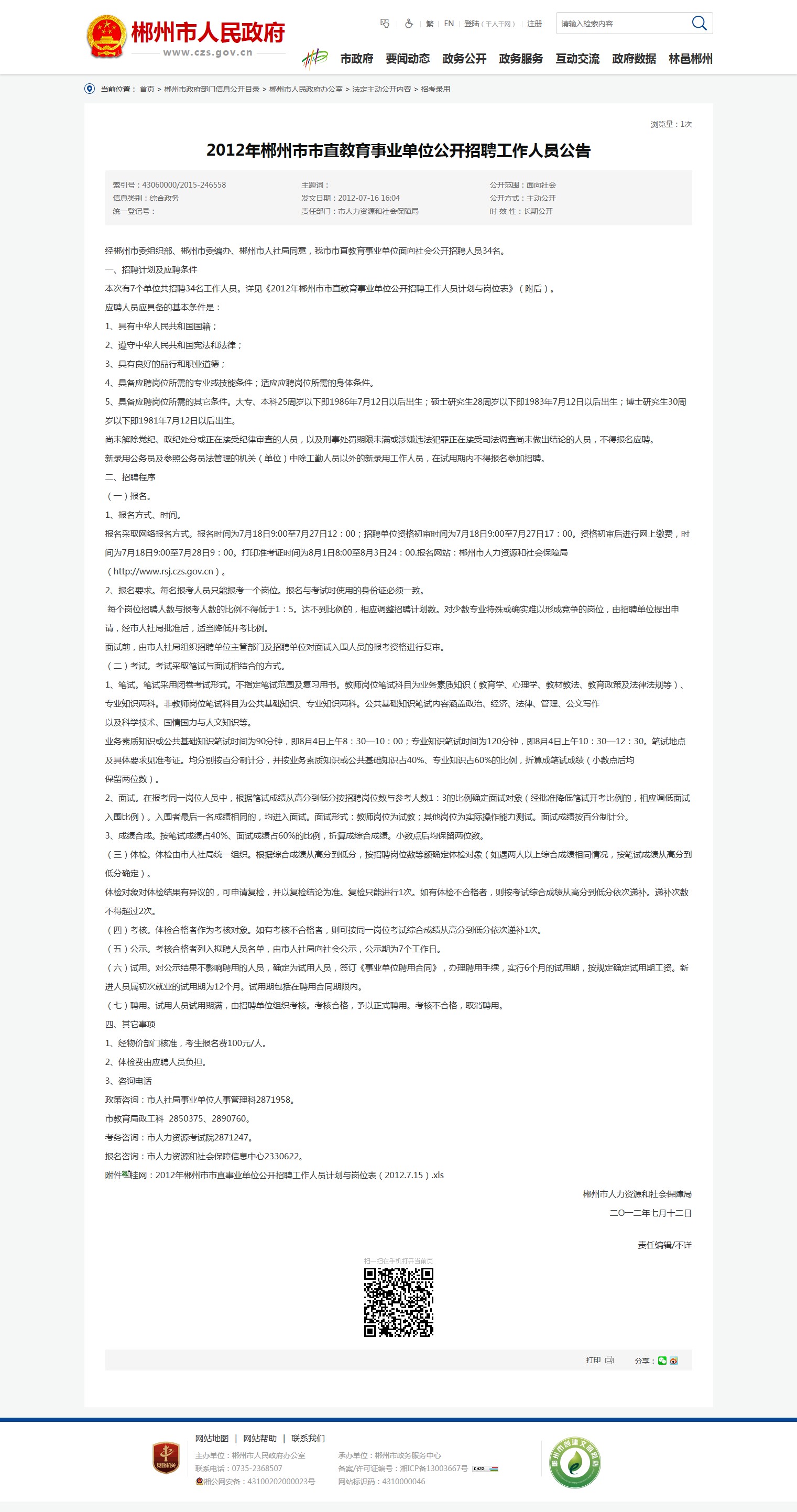 挂网:2012年郴州市市直事业单位公开招聘工作人员计划与岗位表(2012.7.15).xls