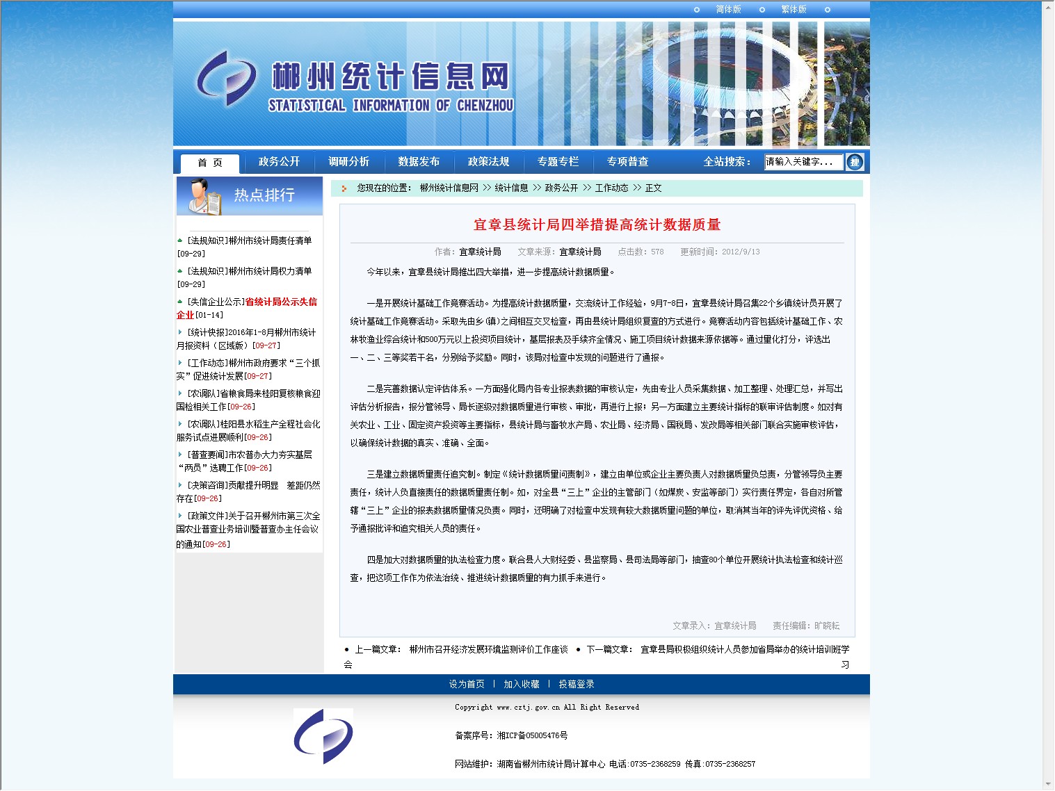 今年以来,宜章县统计局推出四大举措,进一步提高统计数据质量。
