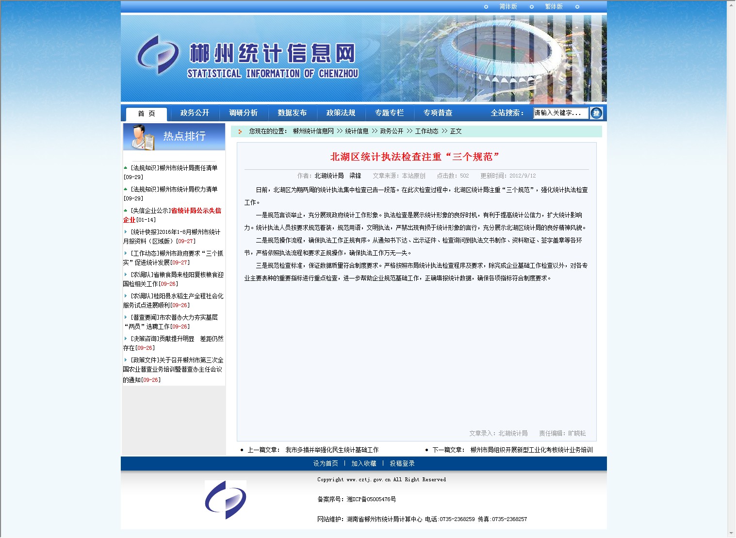 日前,北湖区为期两周的统计执法集中检查已告一段落。在此次检查过程中,北湖区统计局注重“三个规范”,强化统计执法检查工作。