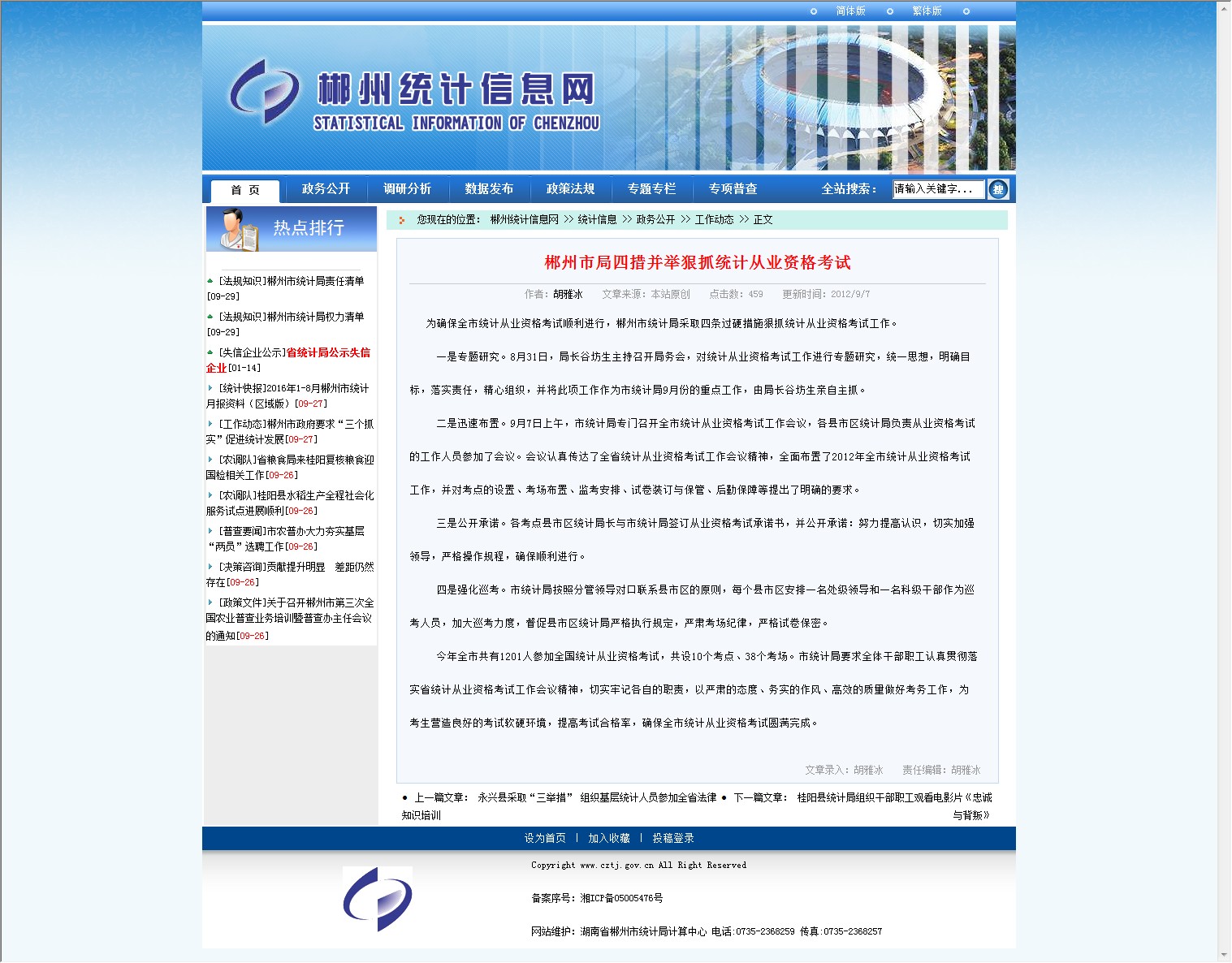 为确保全市统计从业资格考试顺利进行,郴州市统计局采取四条过硬措施狠抓统计从业资格考试工作。