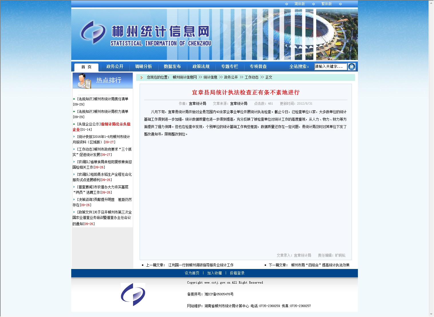 发文机构:郴州市统计局
