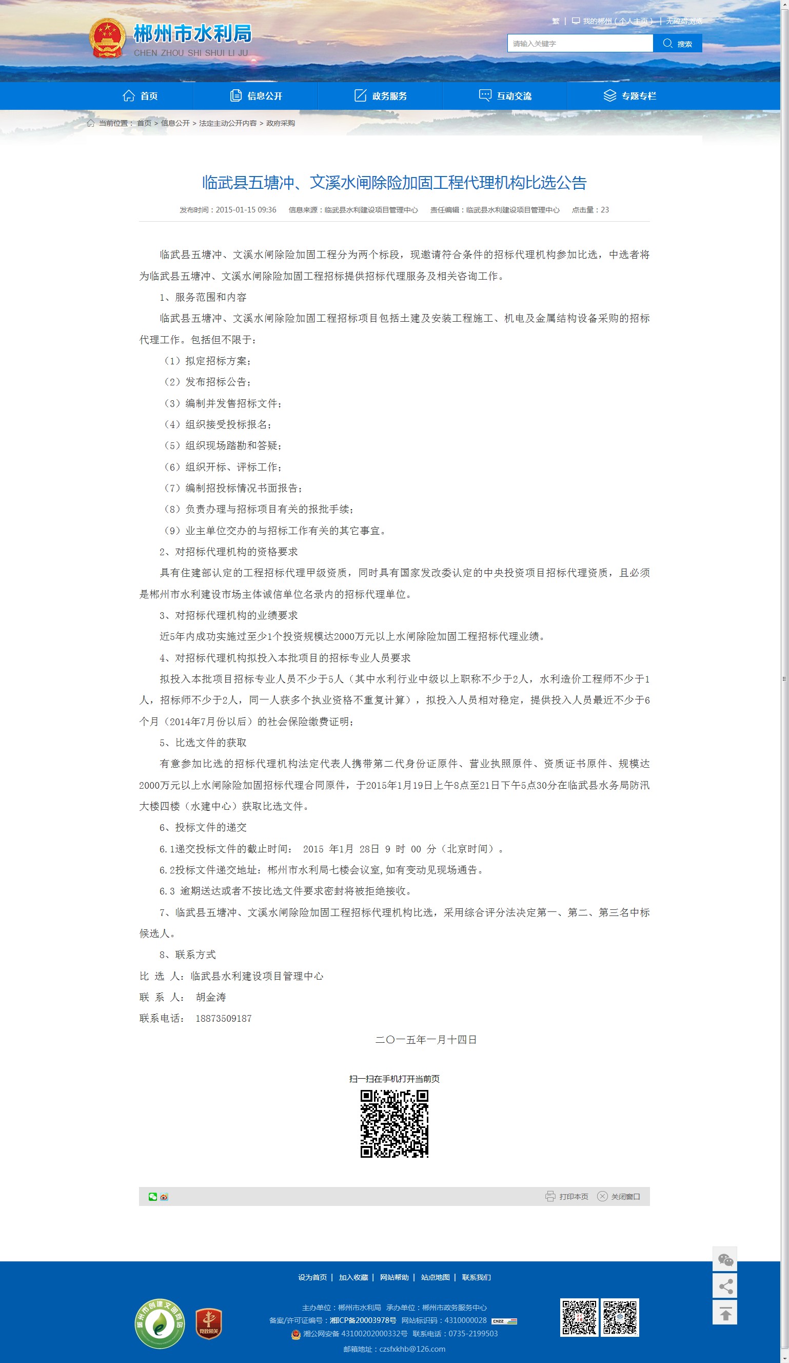 6.2投标文件递交地址:郴州市水利局七楼会议室,如有变动见现场通告。