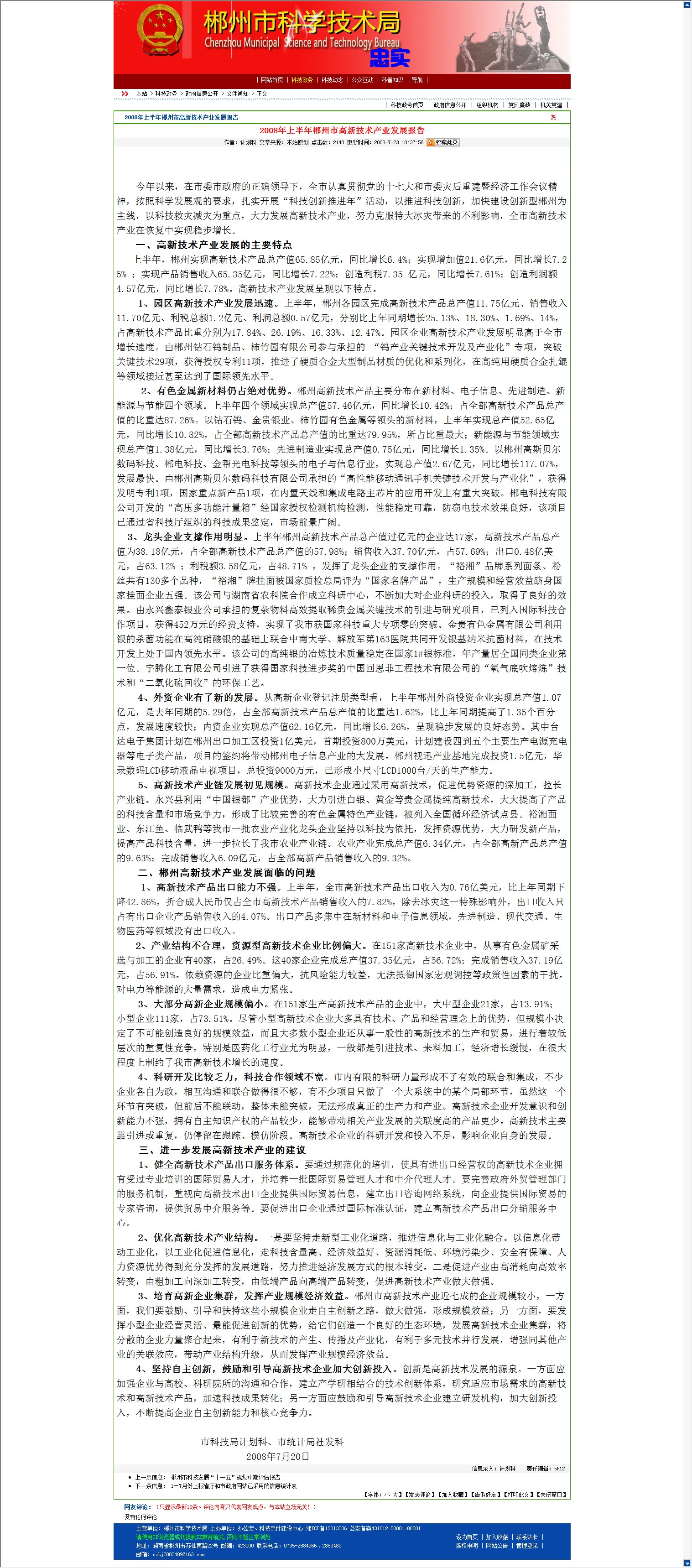 今年以来,在市委市政府的正确领导下,全市认真贯彻党的十七大和市委灾后重建暨经济工作会议精神,按照科学发展观的要求,扎实开展“科技创新推进年”活动,以推进科技创新,加快建设创新型郴州为主线,以科技救灾减灾为重点,大力发展高新技术产业,努力克服特大冰灾带来的不利影响,全市高新技术产业在恢复中实现稳步增长。