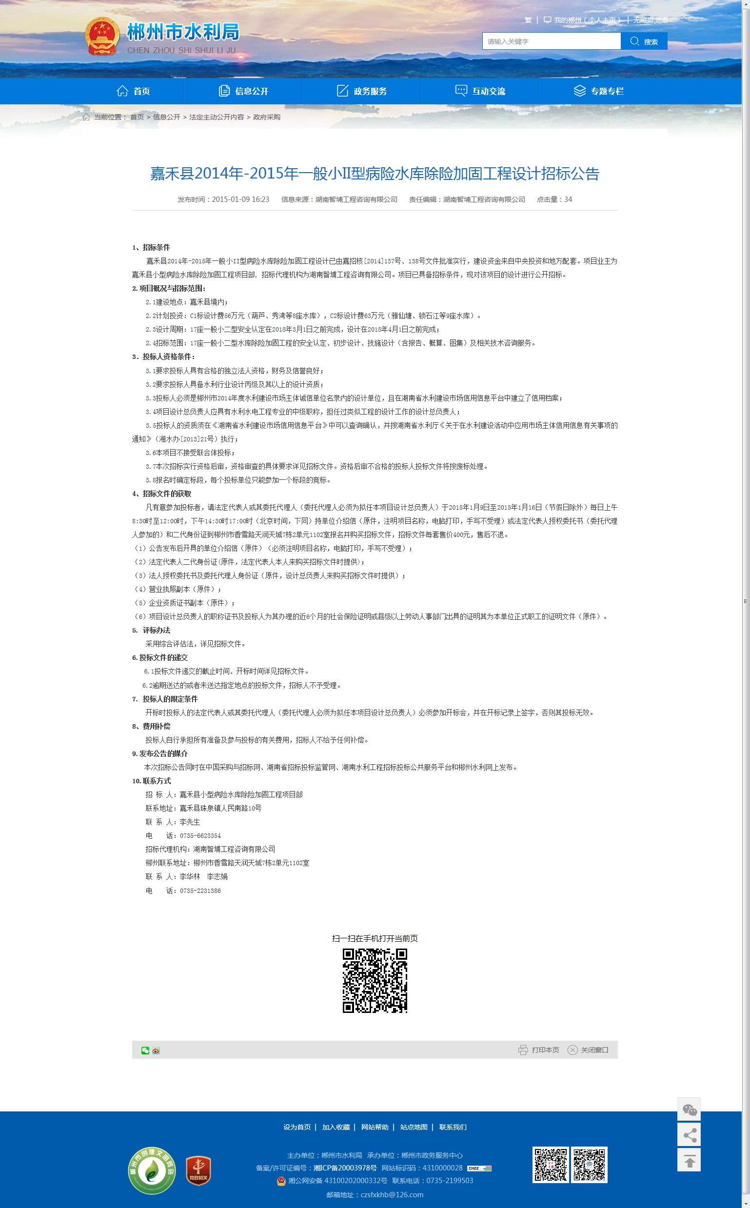 本次招标公告同时在中国采购与招标网、湖南省招标投标监管网、湖南水利工程招标投标公共服务平台和郴州水利网上发布。