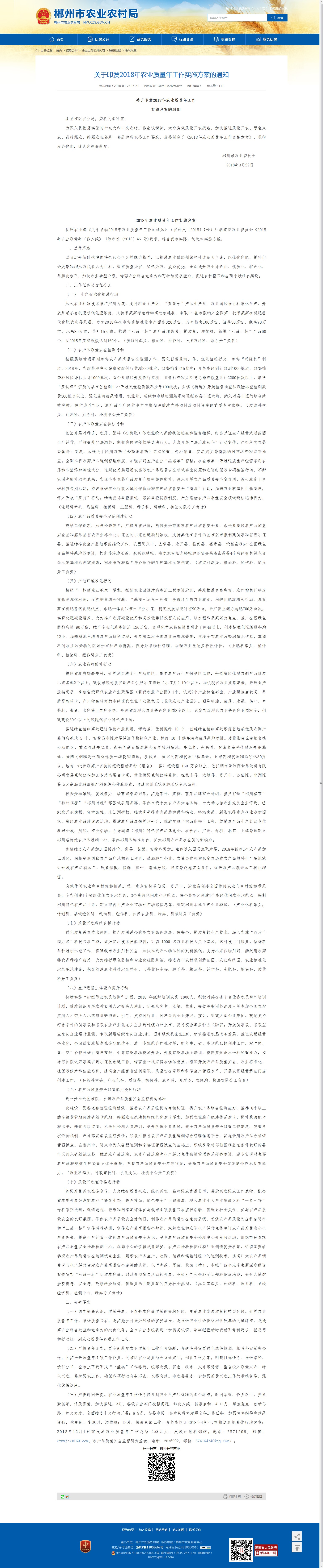 按照农业部《关于启动2018年农业质量年工作的通知》(农计发〔2018〕7号)和湖南省农业委员会《2018 年农业质量年工作方案》 (湘农发〔2018〕45 号)要求,结合我市实际,制定本实施方案。
