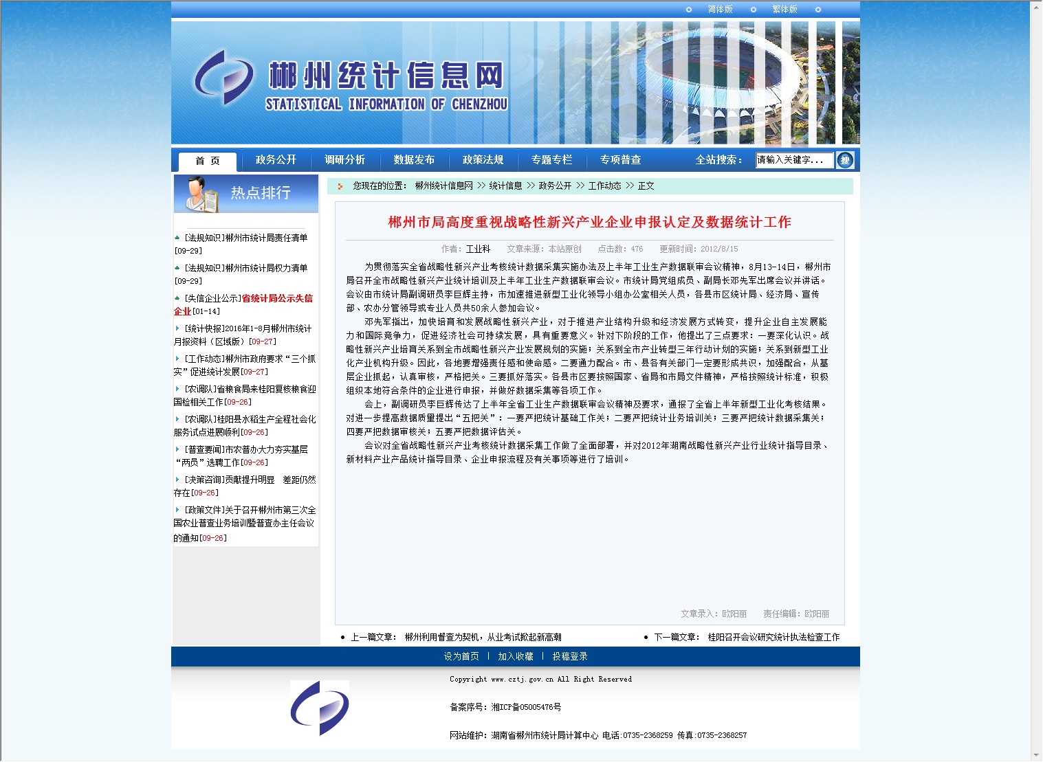 会议对全省战略性新兴产业考核统计数据采集工作做了全面部署,并对2012年湖南战略性新兴产业行业统计指导目录、新材料产业产品统计指导目录、企业申报流程及有关事项等进行了培训。