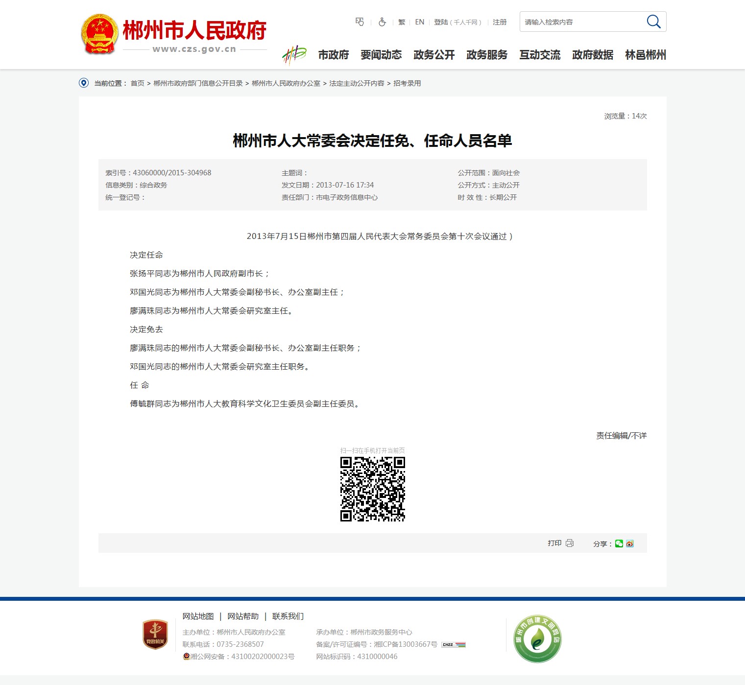 傅毓群同志为郴州市人大教育科学文化卫生委员会副主任委员。