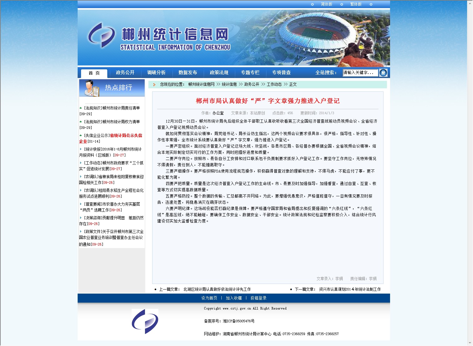 就如何贯彻落实会议精神,局党组书记、局长谷坊生指出,这两个视频会议要求很具体,很严格,指导性、针对性、操作性非常强,全市统计系统要认真做好“严”字文章,强力推进入户登记。
