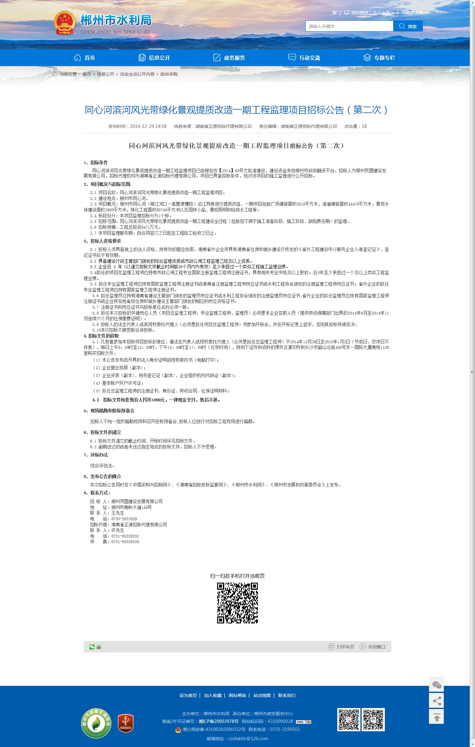 本次招标公告同时在《中国采购与招标网》、《湖南省招标投标监管网》、《郴州市水利网》、《郴州市发展和改革委员会》上发布。