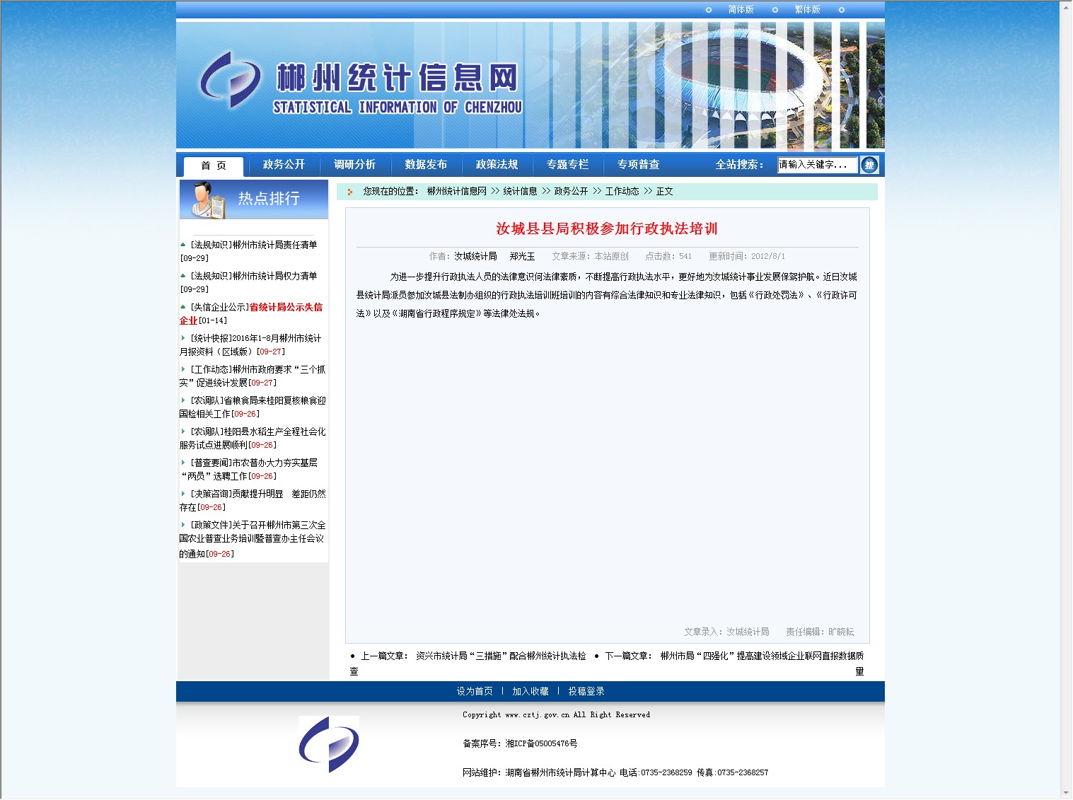发文机构:郴州市统计局