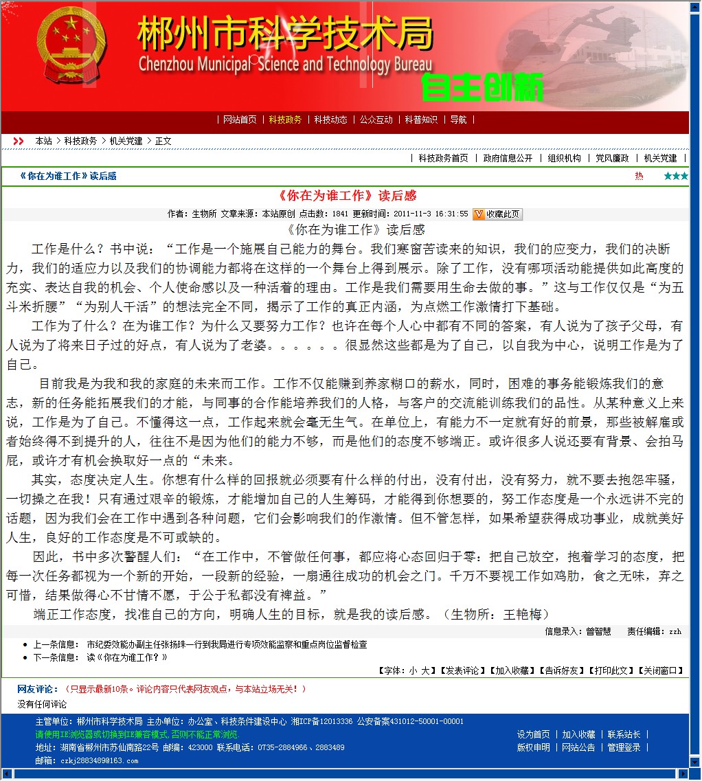 端正工作态度,找准自己的方向,明确人生的目标,就是我的读后感。(生物所:王艳梅)