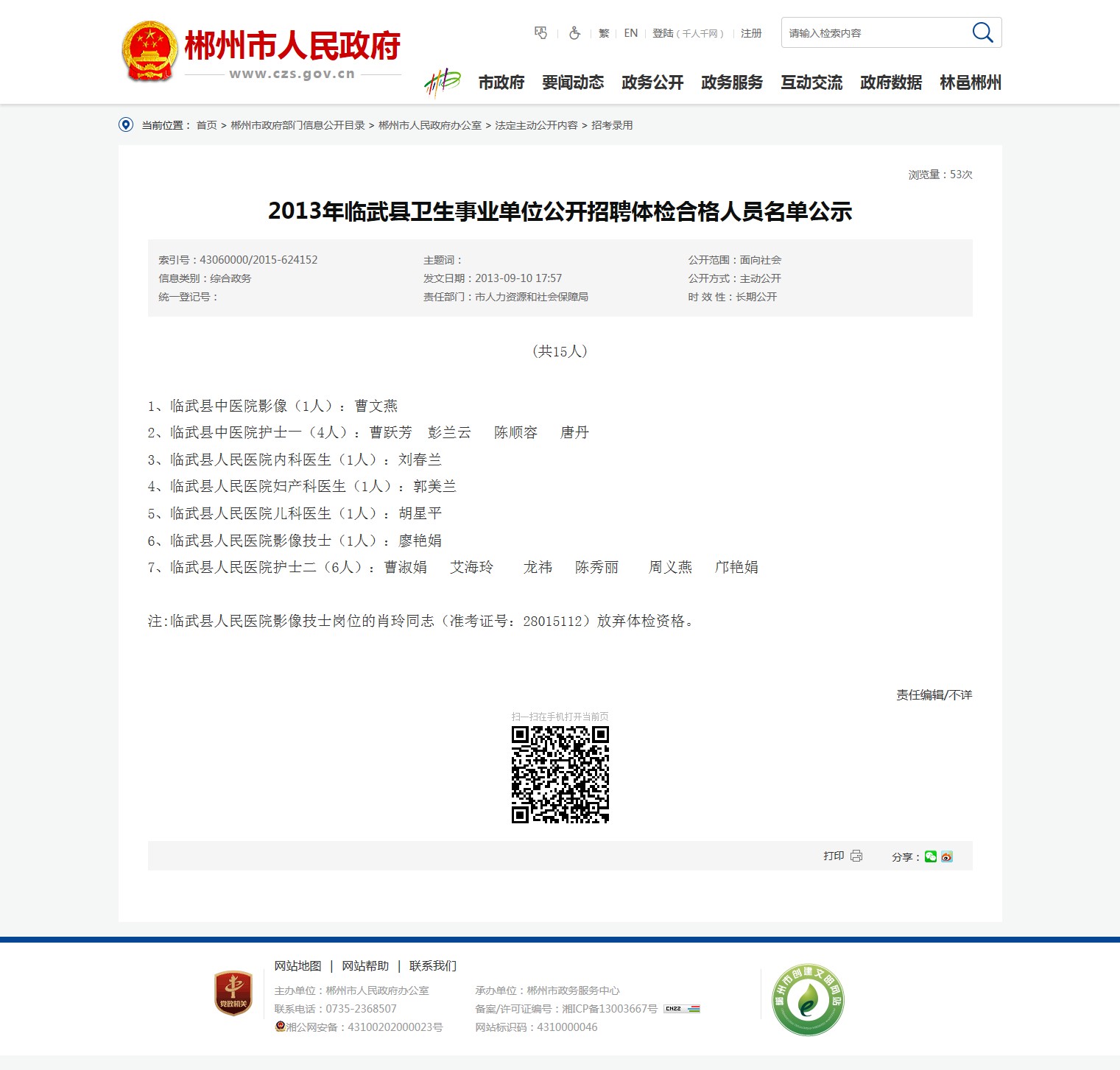 1、临武县中医院影像(1人):曹文燕